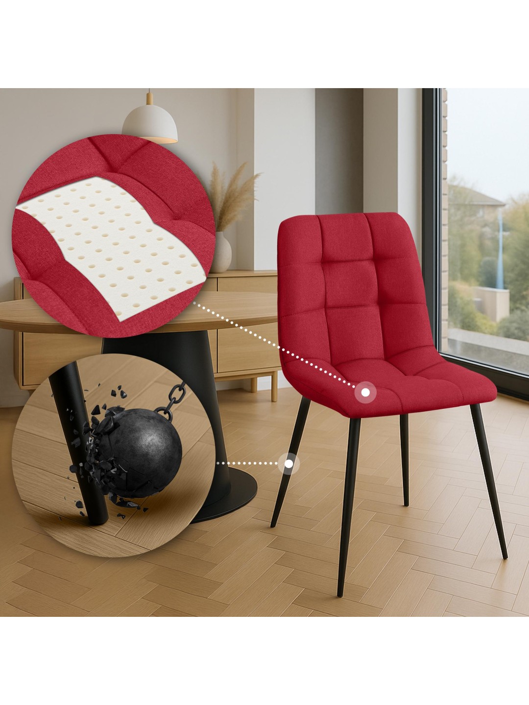 Silla de comedor tela Antibes, rojo