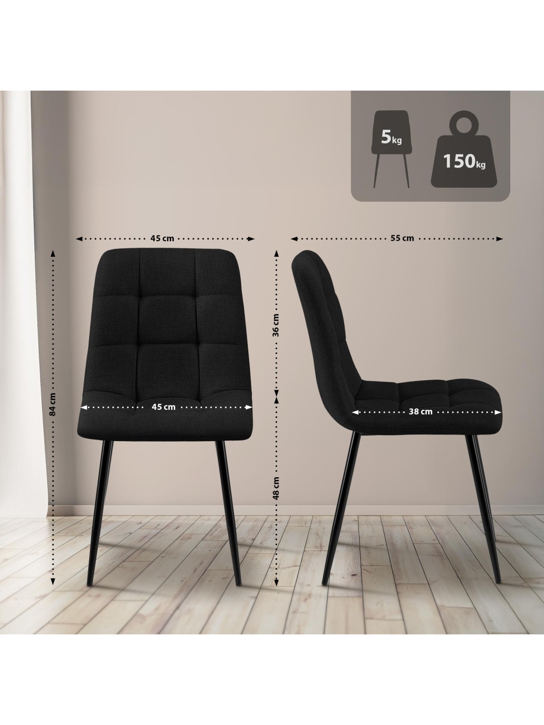 Silla de comedor tela Tilde, negro