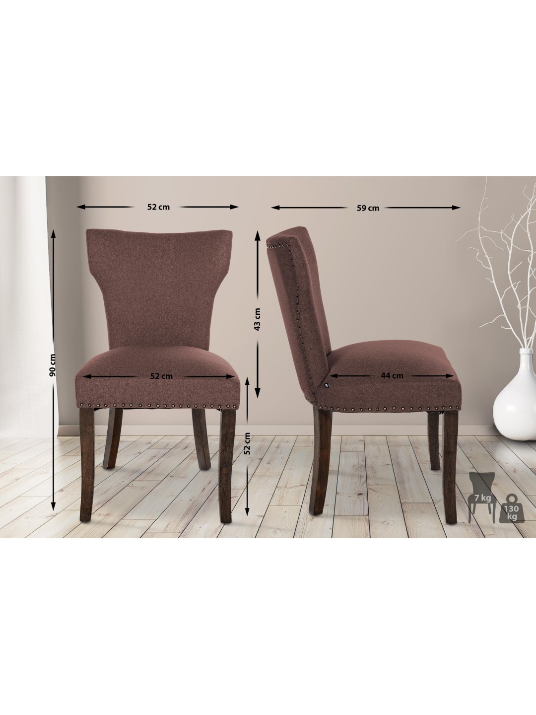 La funda de tela con un aspecto atractivo y la sutil decoración de remaches le dan a la silla una elegancia atemporal que realza cualquier comedor. Versátil, esta silla rústica no sólo encaja perfectamente en el comedor, sino también en otras zonas de estar y en la cocina.