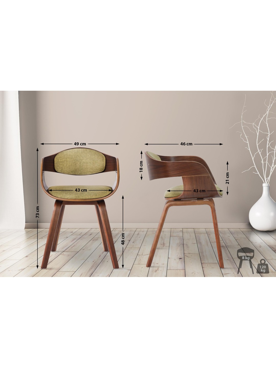 Silla de visita tela Kingston, nogal/verde claro