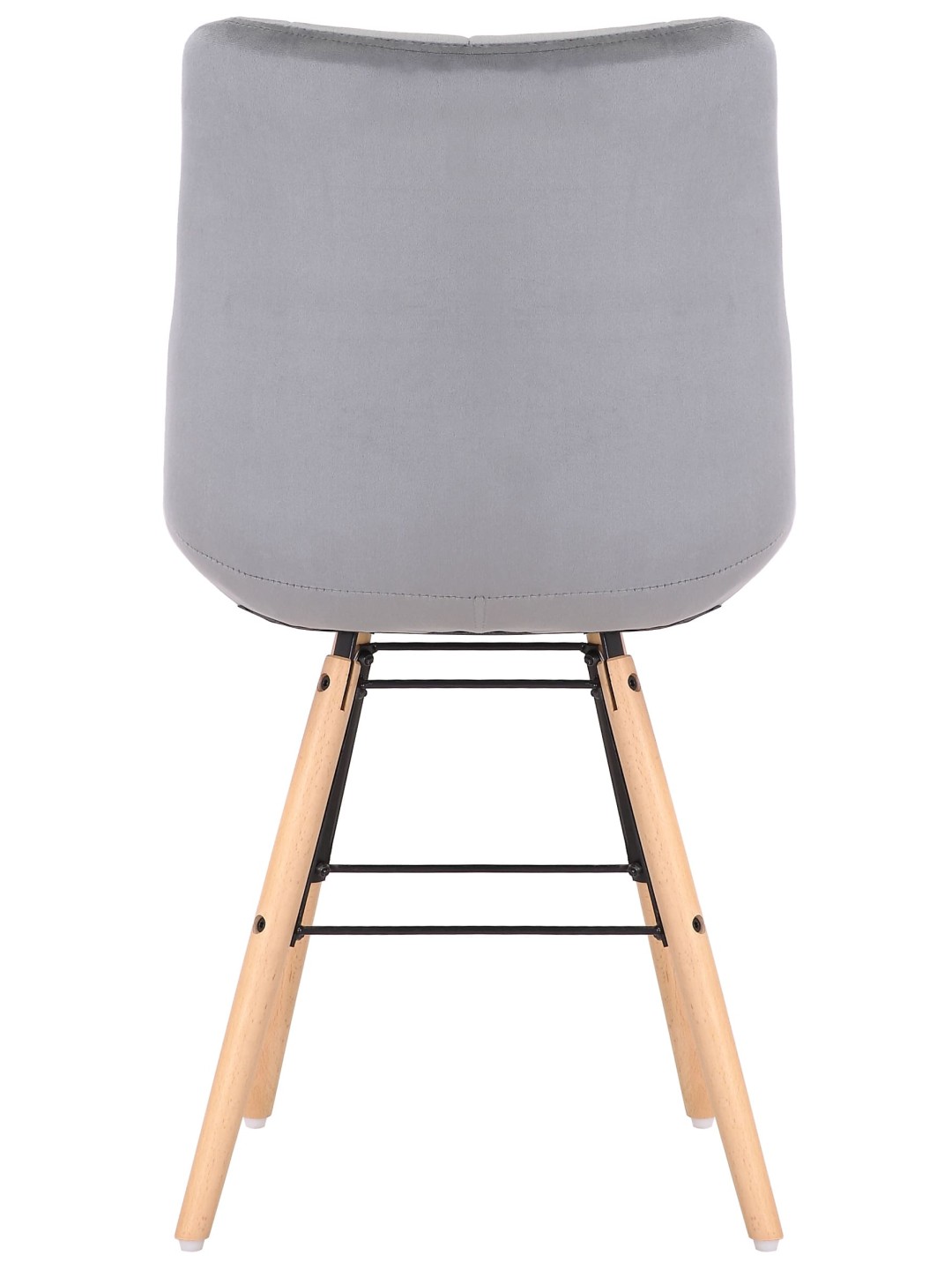 La silla de comedor es un asiento cómodo y elegante para el uso diario. La silla tiene un asiento generosamente acolchado con una funda de terciopelo, lo que la hace cómoda para sentarse durante más tiempo. El confort del asiento se complementa con el cómodo respaldo. Las cuatro robustas patas de madera y metal confieren a la silla tapizada una buena estabilidad y además llaman la atención. También hay protectores de suelo debajo de los pies para evitar que el suelo se raye.