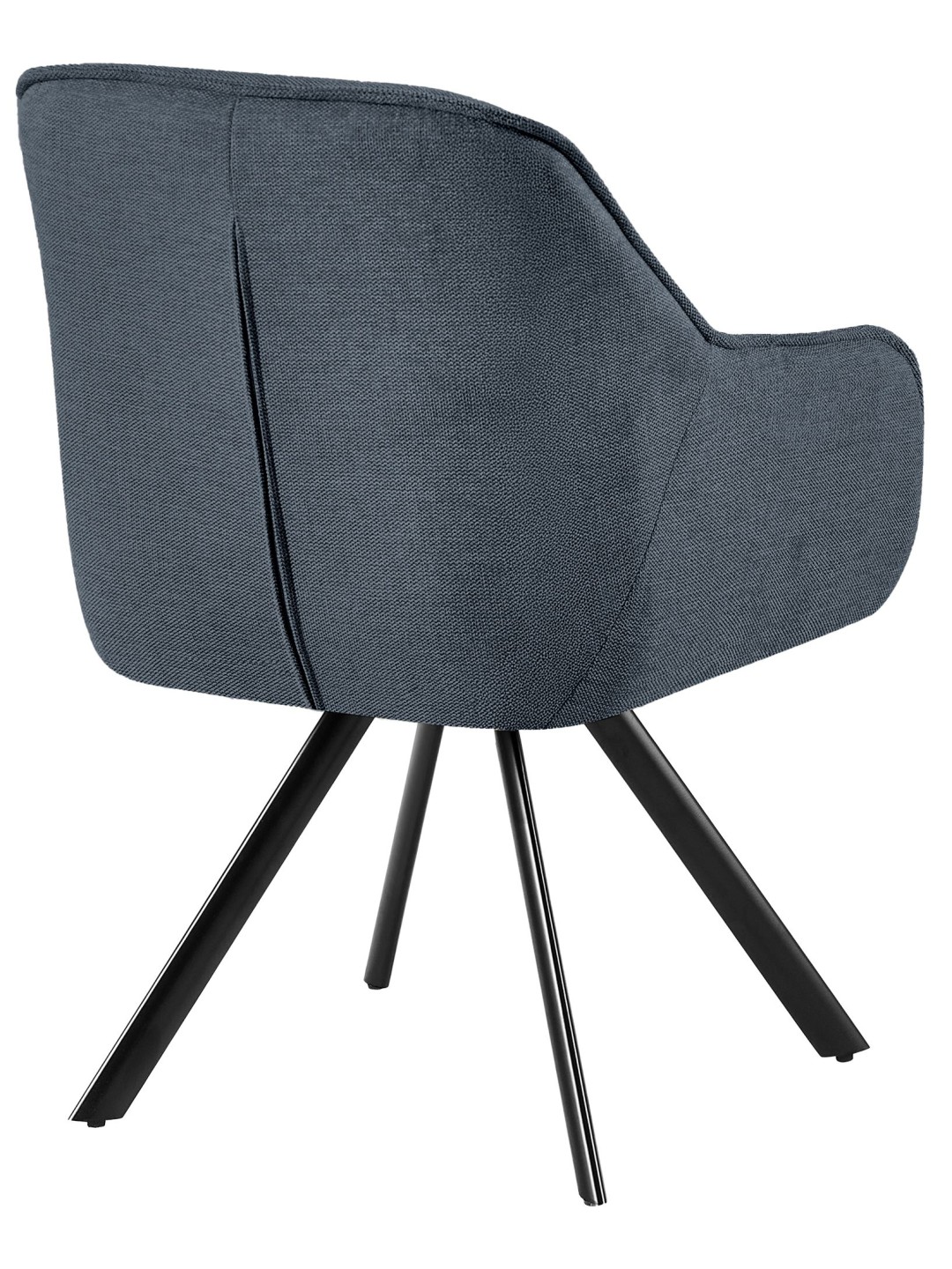 La base de esta silla tipo sillón es la estructura de cuatro patas de metal con recubrimiento en polvo en color negro mate. La silla de comedor Pettuli puede soportar hasta 150 kilogramos sin dudarlo.