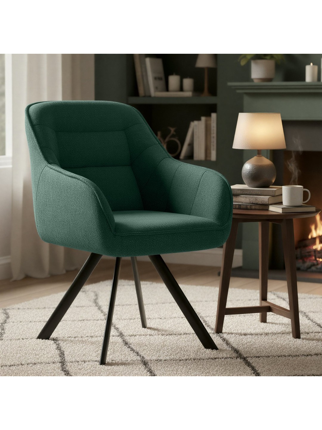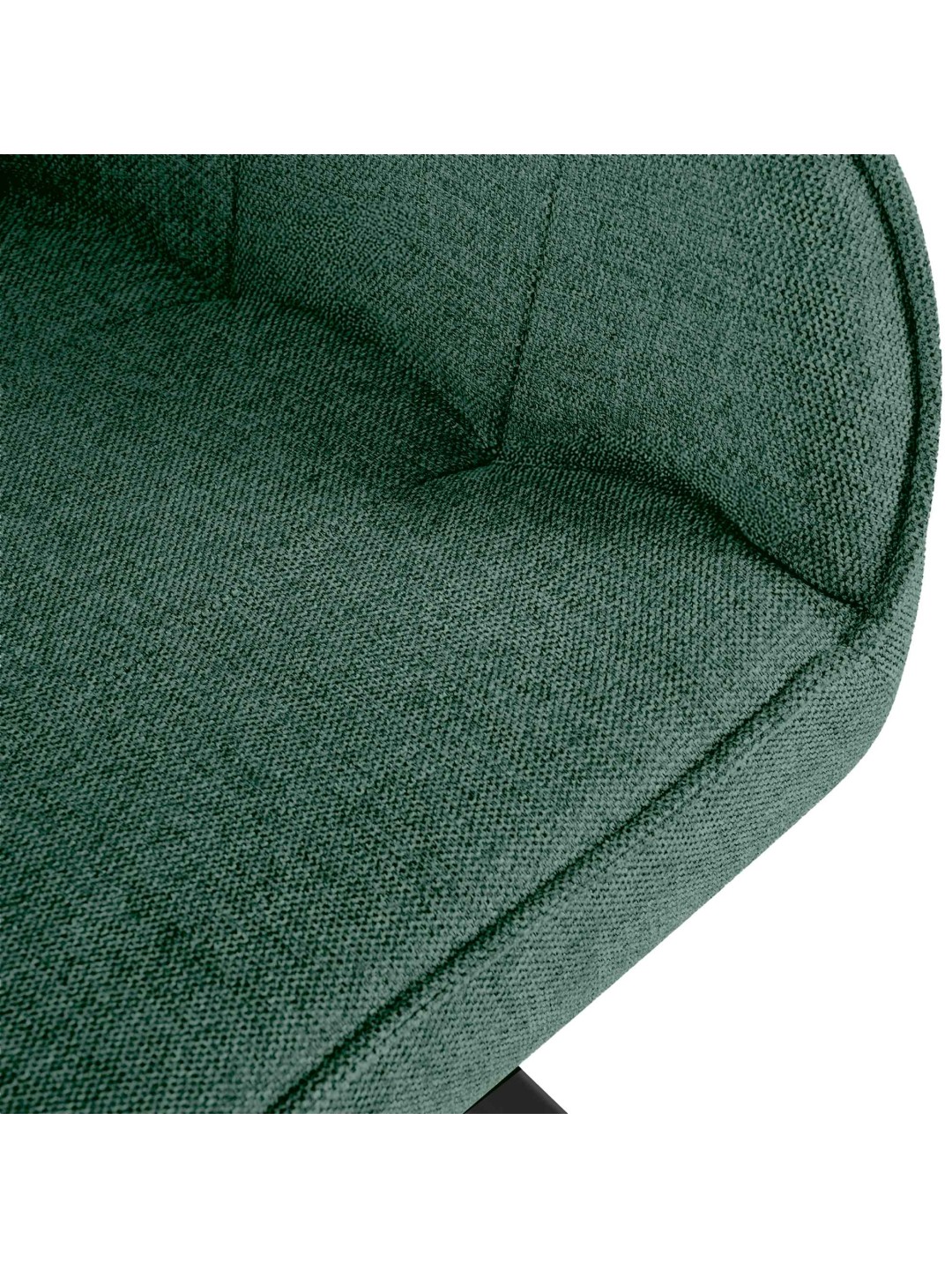 La base de esta silla tipo sillón es la estructura de cuatro patas de metal con recubrimiento en polvo en color negro mate. La silla de comedor Pettuli puede soportar hasta 150 kilogramos sin dudarlo.