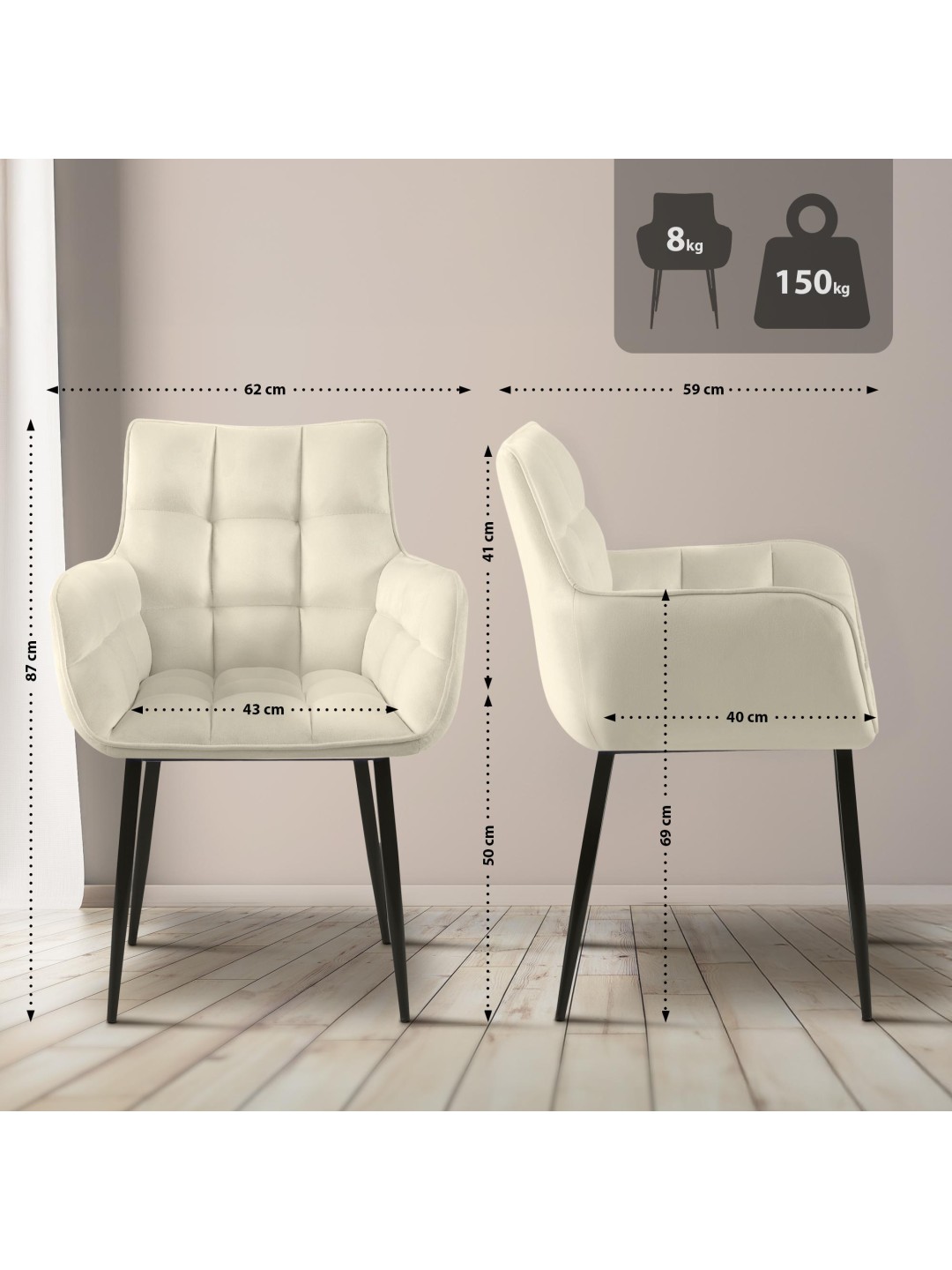 La clave para un asiento cómodo es el agradable acolchado del asiento, el respaldo y los reposabrazos. La carcasa del asiento y el respaldo están completamente tapizados en terciopelo. El patrón acolchado de cuadros crea una apariencia elegante.
