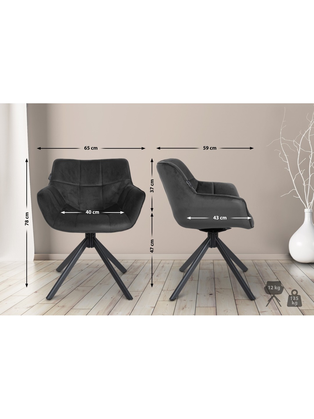 Silla Westport Terciopelo, gris oscuro