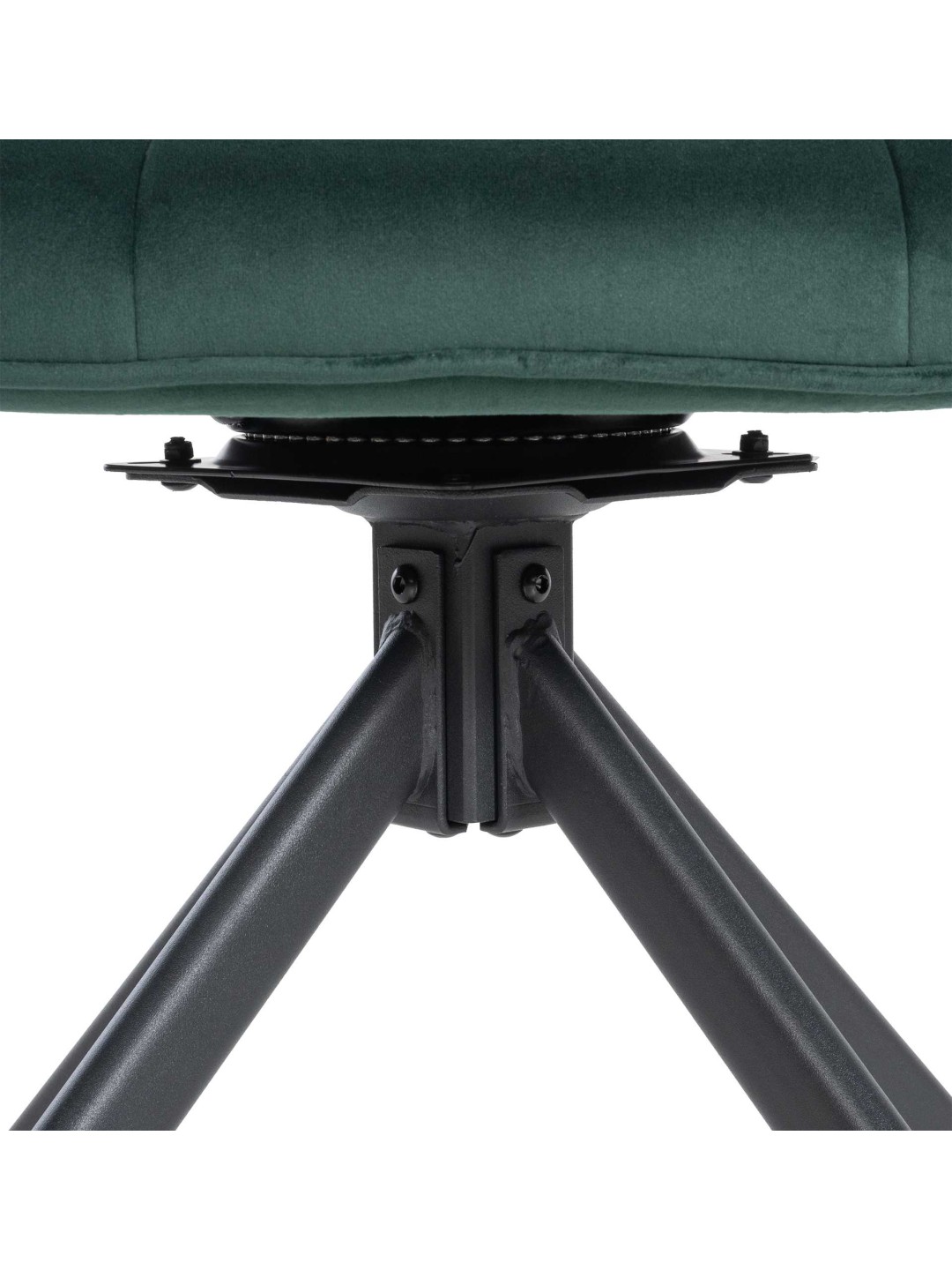 Soportado por un moderno marco metálico de 4 pies con un mecanismo especial que automáticamente gira la silla a su posición inicial después de levantarse. Además, en los pies se colocan protectores de suelo para proteger el suelo de arañazos antiestéticos. Esta silla no solo combina un diseño estético con una comodidad excepcional, sino que también muestra una consideración práctica por la longevidad de sus muebles.