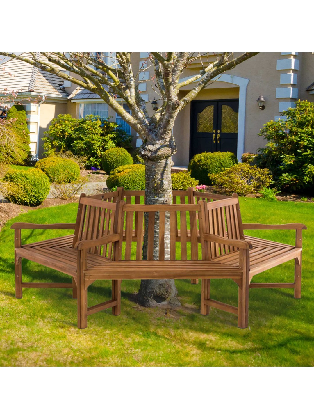¡Con este banco de árbol podrás sentarte cómodamente a la sombra en cualquier momento! El banco de 360 grados con aspecto natural es un atractivo visual en cualquier jardín. El acabado de alta calidad garantiza un soporte estable y una larga vida útil. Este bonito banco está fabricado en madera de teca* de primera calidad, que es especialmente resistente a la intemperie. Esto significa que puede soportar todo tipo de viento y clima durante todo el año. ¡Trae este lugar de relajación a casa de inmediato!