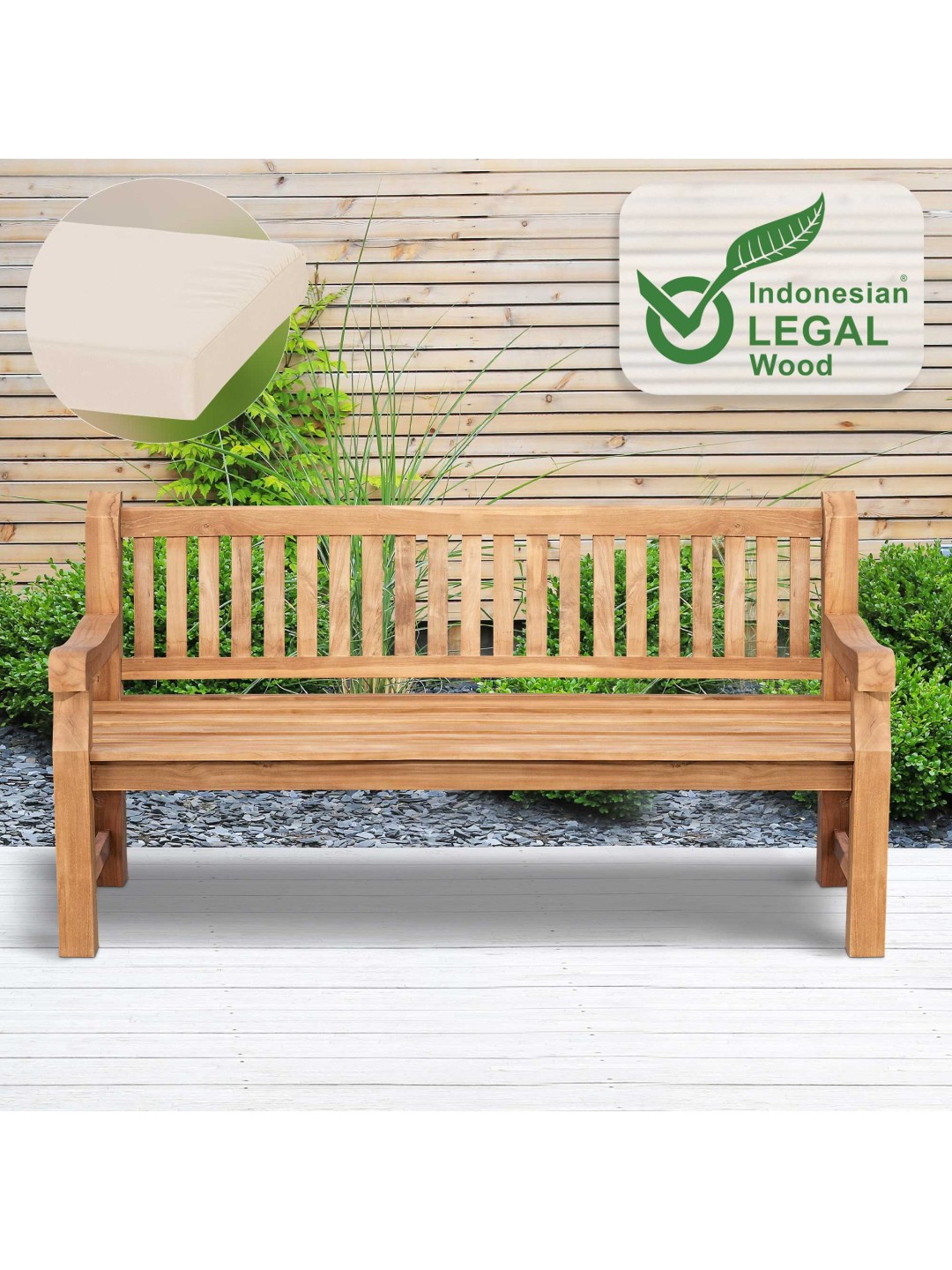 Banco de teca Jackson con cojín de asiento