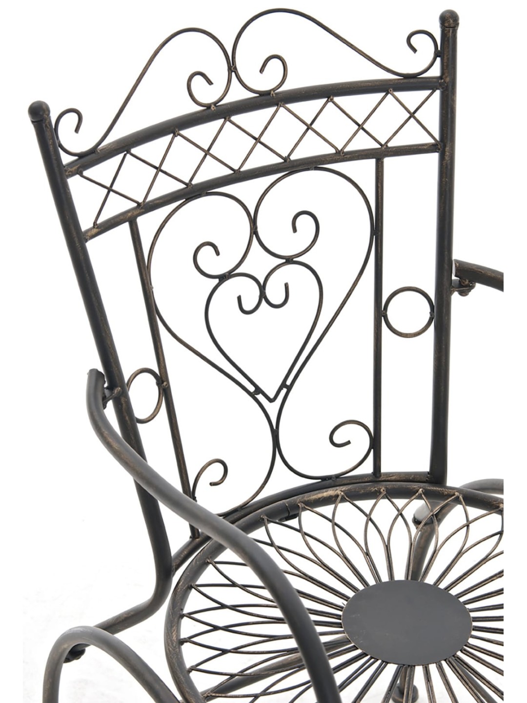 Con el juego de 2 sillas Sheela podrás disfrutar de momentos idílicos al aire libre. Con su diseño elegante y detallado encuentra su lugar en el jardín y en el balcón. La delicada estructura de hierro impresiona con sus adorables adornos hechos a mano. Una pátina antigua recreada a mano refina las superficies de las sillas de jardín. En los colores marrón antiguo, blanco antiguo, crema antiguo, verde antiguo, bronce y blanco, el juego de 2 sillas Sheela se puede combinar maravillosamente con muchos estilos de decoración.