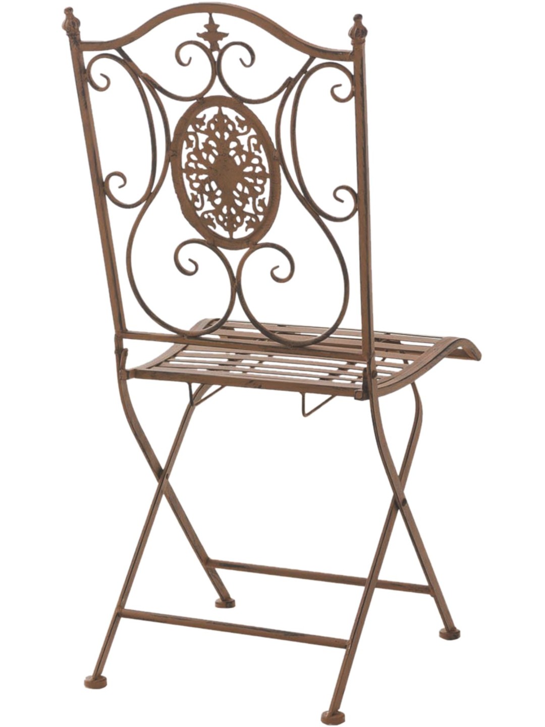 Si es necesario, las sillas de hierro se pueden plegar y guardar fácilmente para ahorrar espacio. El producto está fabricado de hierro y, por tanto, es extremadamente estable. La superficie está acabada con una pátina antigua hecha a mano.