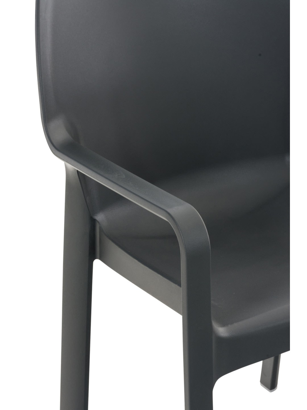 Los ​​reposabrazos no ajustables y el respaldo robusto proporcionan un confort óptimo, mientras que los materiales resistentes a la intemperie garantizan que la silla de jardín se pueda dejar afuera incluso con mal tiempo sin sufrir daños. La capacidad de apilamiento de las sillas resulta especialmente práctica: puedes guardar hasta cuatro en el cobertizo para ahorrar espacio si el espacio en la terraza es reducido.