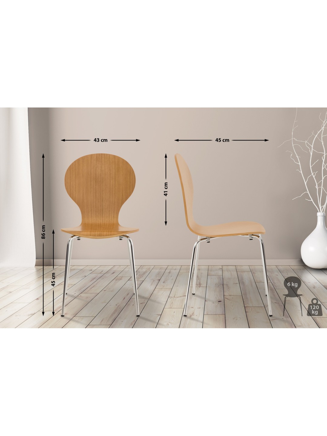 Esta silla apilable es ideal para salas de espera, ferias, comedores y salas de eventos.