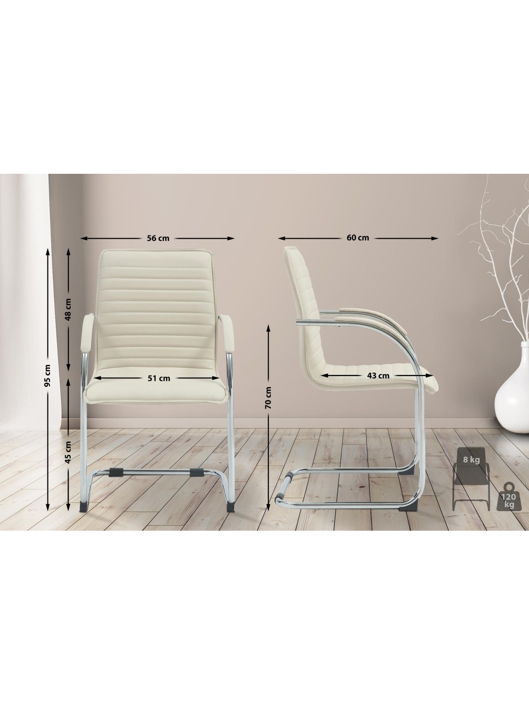 Juego de 2 sillas de visita Tira piel sintética, crema