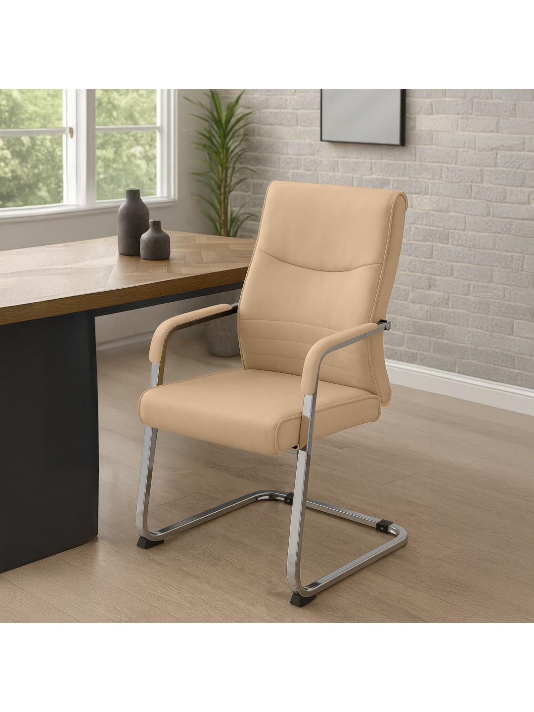 La estable estructura voladiza de acero cromado proporciona una estabilidad fiable. Opcionalmente, las fundas de cuero artificial de fácil cuidado o el tejido duradero garantizan un aspecto de alta calidad y un tacto agradable. Los protectores de suelo debajo de las guías protegen suelos sensibles y mejoran el agarre en superficies lisas. Cada silla puede soportar hasta 120 kg, lo que la hace ideal para reuniones y áreas de recepción de mucho uso.