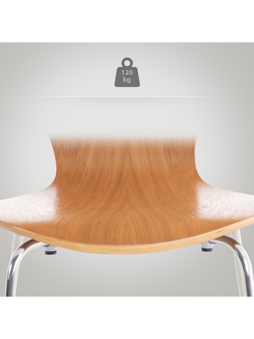 Esta silla de visita es ideal para salas de espera, ferias y otros eventos. Además de su aspecto y su diseño atemporal, esta silla para visitas se caracteriza especialmente por su asiento ergonómico, con el que permanecer sentado durante largos períodos no resulta agotador. El asiento es de madera lacada (los colores "roble" y "nogal" son de chapa de madera auténtica). La estructura de metal con aspecto cromado garantiza un soporte estable y seguro. Cuando no están en uso, las sillas se pueden apilar y almacenar para ahorrar espacio.