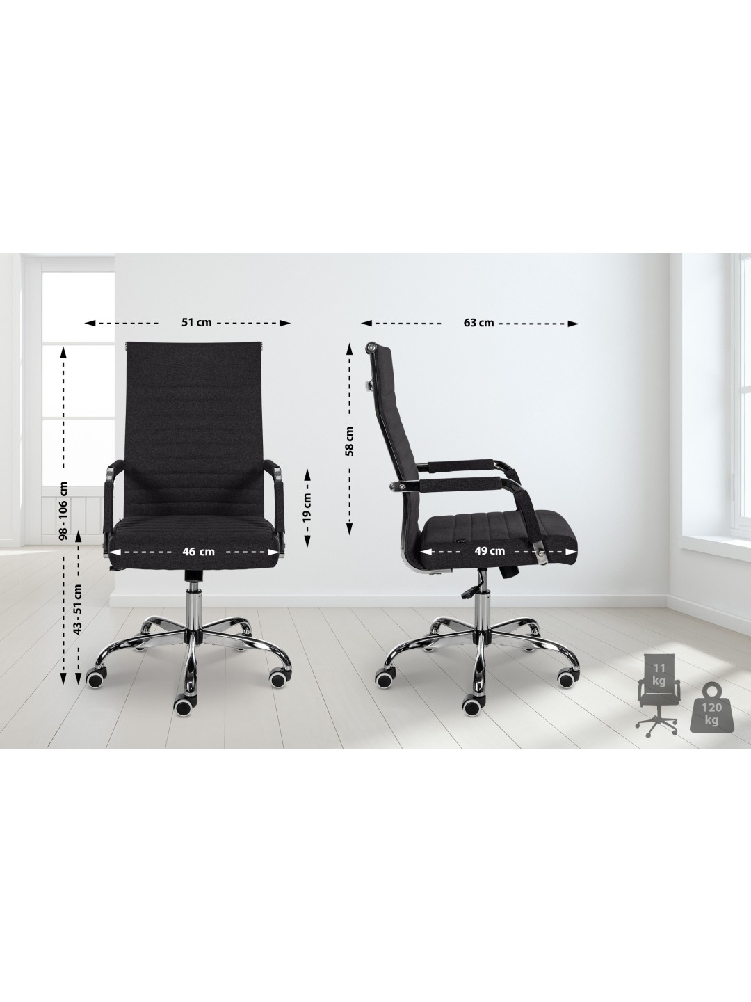Altura del reposabrazos: 19 cm