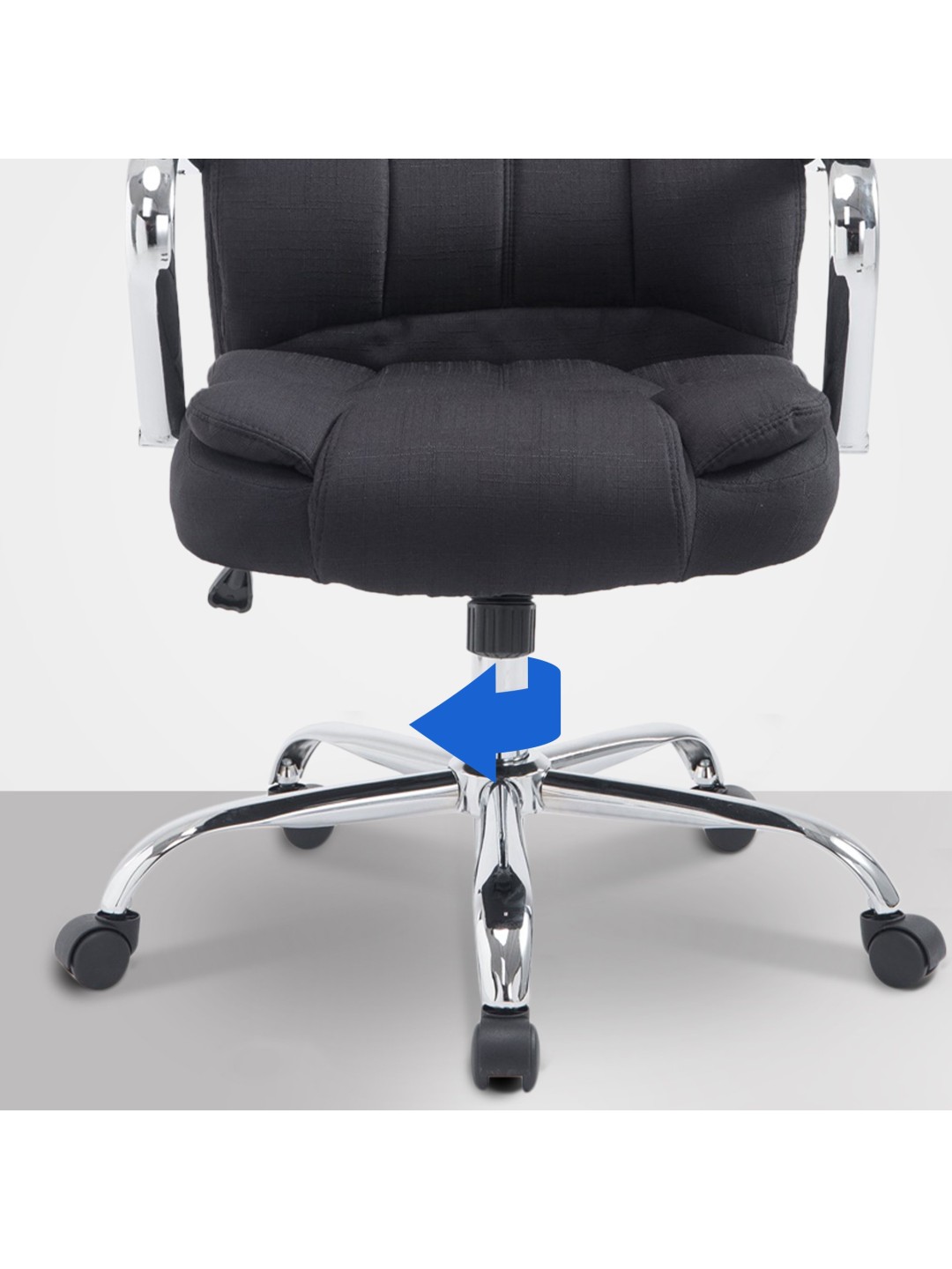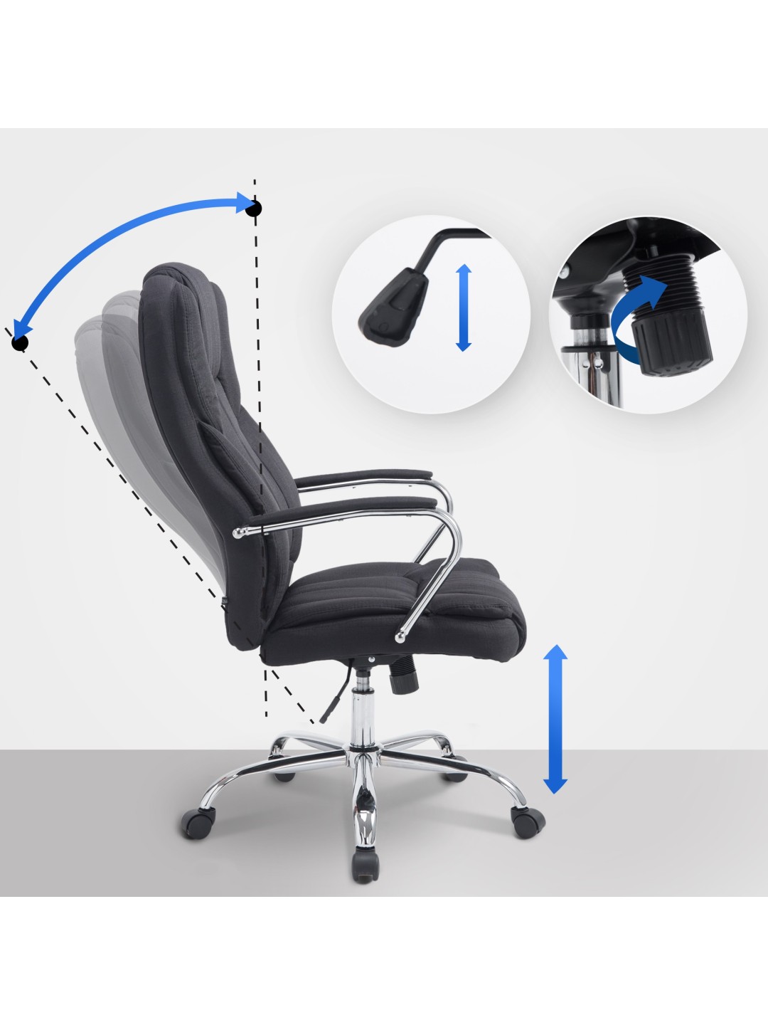 La silla ejecutiva Xanthos es una silla de oficina exclusiva con tapizado de muy alta calidad y un aspecto de tela moderno. La funda de tela no sólo tiene un aspecto bonito, sino que también es especialmente robusta y fácil de cuidar. Una estructura de metal estable también garantiza un soporte seguro. Además, se garantiza una sentada ergonómica gracias a la altura ajustable del asiento. Además, la altura del asiento se puede ajustar continuamente mediante una palanca debajo del asiento. Un mecanismo basculante incorporado garantiza una mayor libertad de movimiento. La silla de oficina Xanthos se apoya firmemente sobre cinco ruedas de funcionamiento suave. No importa si se trata de suelos duros o alfombrados, siempre podrá rodar con facilidad y soltura por el suelo.