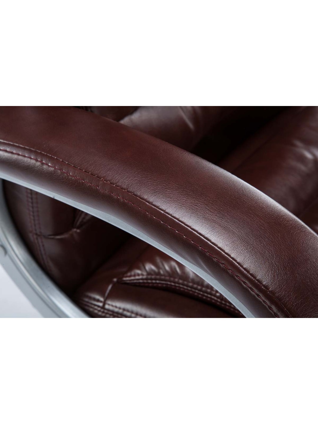 La silla de oficina Vancouver es una silla de oficina exclusiva con un acolchado de muy alta calidad y un tapizado de piel sintética. Las fundas de cuero artificial tienen la ventaja de que son elásticas y se estiran suavemente cuando se alivia la carga. Esto no sólo tiene un aspecto más bonito, sino que también aumenta la vida útil de la funda del asiento. La estructura es de metal con aspecto cromado y, por lo tanto, es muy estable.