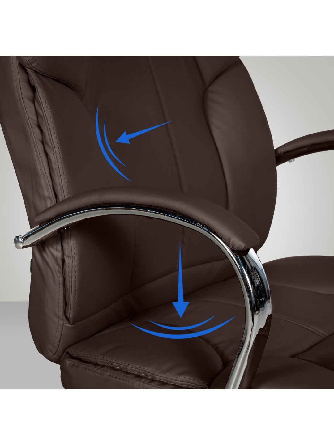 La silla de oficina BIG Xanthos está diseñada para ofrecer ergonomía y resistencia, con una capacidad de carga de hasta 210 kg. El ajuste continuo de altura y un mecanismo basculante incorporado ofrecen opciones de ajuste individuales. Los reposabrazos y respaldos acolchados, así como el ancho del asiento XXL, favorecen el confort al sentarse. Una estructura de metal con aspecto cromado y ruedas de marcha suave garantizan estabilidad y movilidad en diferentes superficies. La funda de cuero artificial es fácil de cuidar y está diseñada para un uso prolongado.