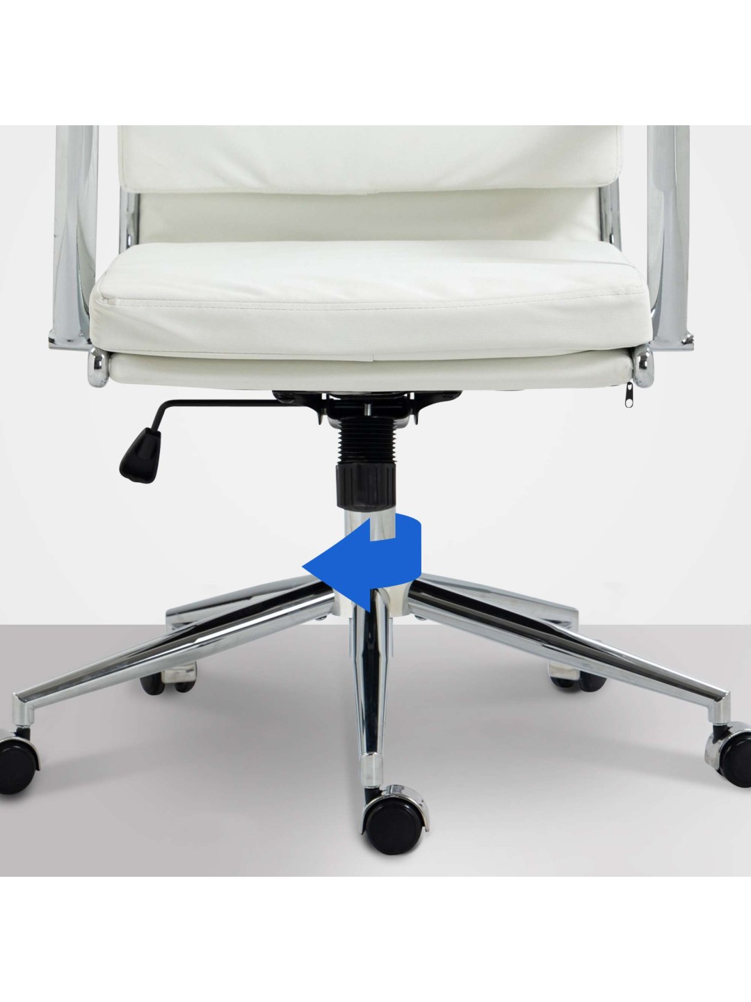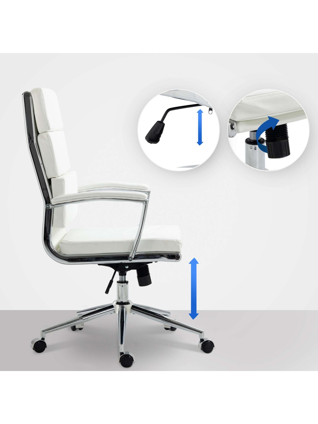La silla de oficina Cleveland combina un diseño ergonómico con comodidad individual y una apariencia elegante. Es el complemento perfecto para cualquier oficina donde la salud y el bienestar en el lugar de trabajo sean importantes. El respaldo triple acolchado y la forma ergonómica favorecen su posición natural al sentarse. Con el asiento regulable en altura, la función basculante ajustable y las ruedas giratorias de 360°, la silla se adapta de forma flexible a sus necesidades. La elección entre revestimiento de piel auténtica, polipiel o tela le permite personalizar el diseño según su gusto personal. El marco cromado ofrece estabilidad y una larga vida útil. Con su amplio asiento, el Cleveland ofrece una comodidad óptima incluso en largas jornadas de trabajo.