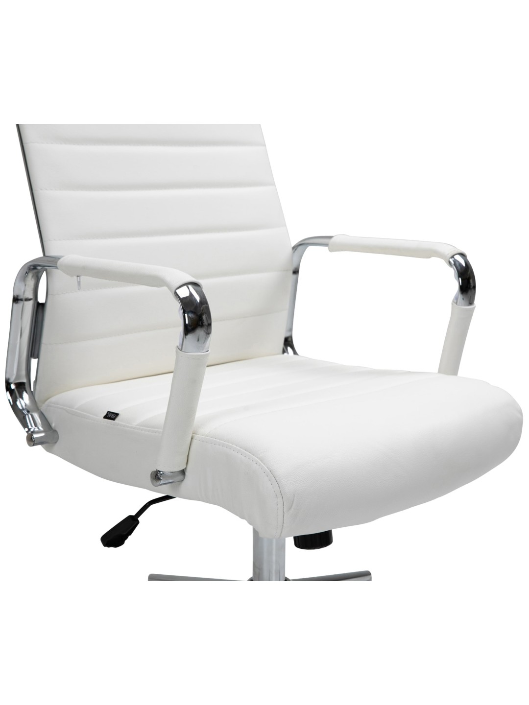 Se utilizó piel de vaca de alta calidad para cubrir el asiento y el respaldo. La altura del asiento es infinitamente ajustable y garantiza un asiento ergonómico. Además, la silla de escritorio está equipada con un mecanismo basculante que garantiza una mayor libertad de movimiento.