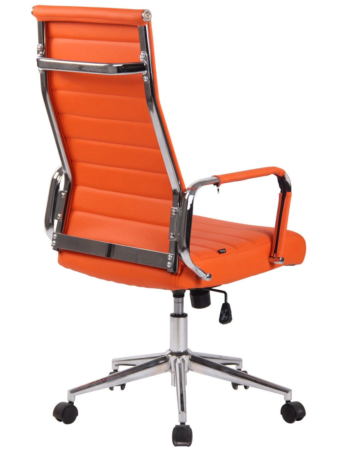 Silla de oficina ColumbusLa exclusiva silla de oficina Columbus no sólo impresiona por su aspecto moderno, sino que nadie puede superarla en términos de comodidad. Su acolchado de alta calidad y su funda de piel sintética de fácil cuidado garantizan una sensación cómoda incluso durante varias horas. Además, la altura del asiento se puede ajustar de forma continua y garantiza un asiento ergonómico. Además, la silla de escritorio está equipada con un mecanismo basculante que garantiza una mayor libertad de movimiento. La elegante estructura de metal con aspecto cromado y los robustos reposabrazos curvados con revestimiento de piel sintética le dan al conjunto un toque extra. La estabilidad está garantizada por la estructura de metal con aspecto cromado, que también está disponible en negro con cubierta negra. Las cinco ruedas de funcionamiento suave le permiten rodar fácil y cómodamente por el suelo, ya sea sobre suelos duros o alfombrados.