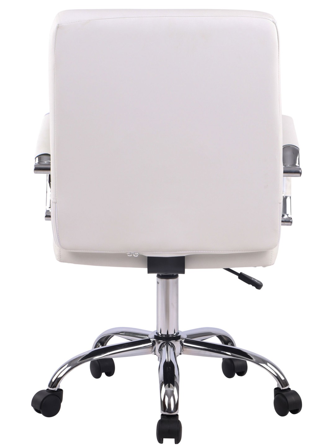 La funda de piel sintética con bonitas costuras decorativas no sólo tiene un aspecto elegante, sino que también es especialmente robusta y fácil de cuidar. La altura del asiento se puede ajustar de forma continua mediante la palanca situada debajo del asiento. Esto garantiza un alto nivel de comodidad durante el trabajo durante un período de tiempo más largo. Además, la estructura de metal con aspecto cromado promete una larga vida útil. La silla de oficina se apoya de forma segura sobre cinco ruedas de funcionamiento suave. No importa si se trata de suelos duros o alfombrados, siempre podrás rodar con facilidad y soltura por el suelo.