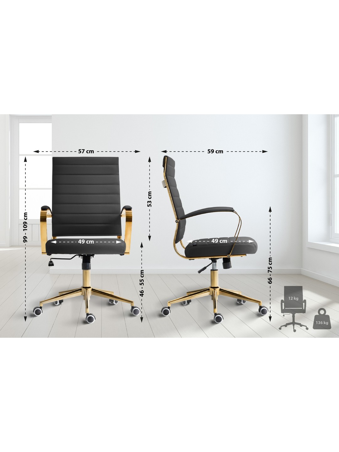 La construcción robusta garantiza una gran estabilidad y una capacidad de carga máxima de 136 kg. El elegante aspecto dorado y las ruedas de goma de funcionamiento suave protegen su suelo y dan a su oficina un toque de elegancia.