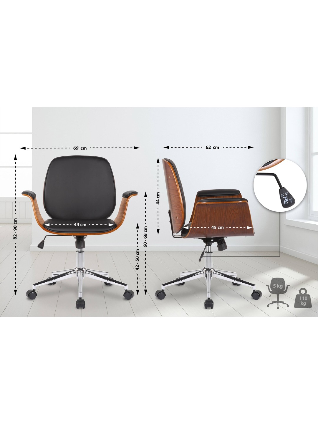 Silla de oficina Kemberg cuero artificial, nogal/negro