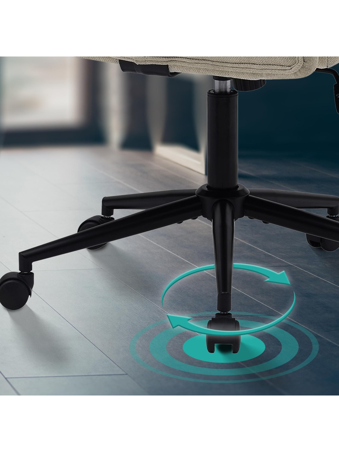 La silla de escritorio es ajustable en altura y puede girar 360 grados, por lo que puede adaptarla individualmente a sus necesidades. Gracias a las cinco ruedas de marcha suave, la silla se puede mover sin esfuerzo y sin dañar el suelo. La tensión del mecanismo basculante integrado se puede ajustar.