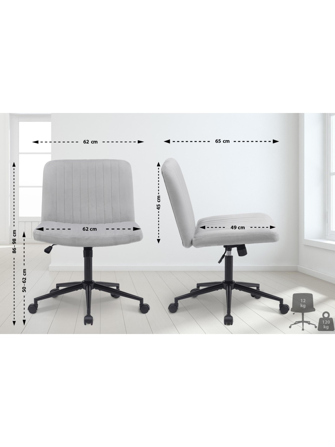 Silla de oficina Kingman terciopelo, gris claro
