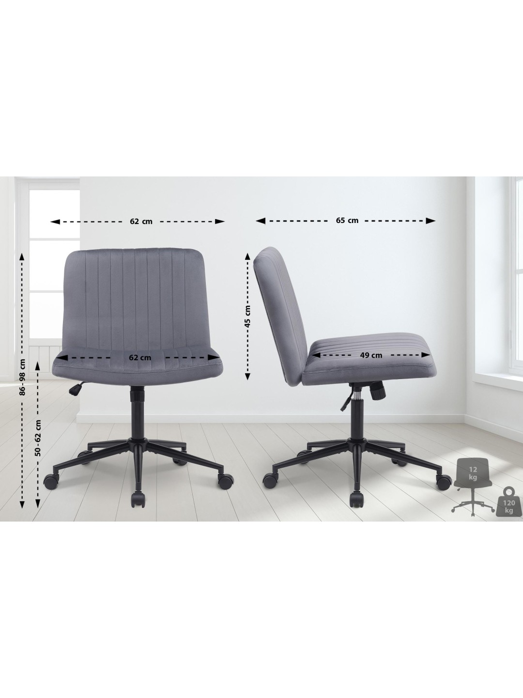 Silla de oficina Kingman terciopelo, gris oscuro