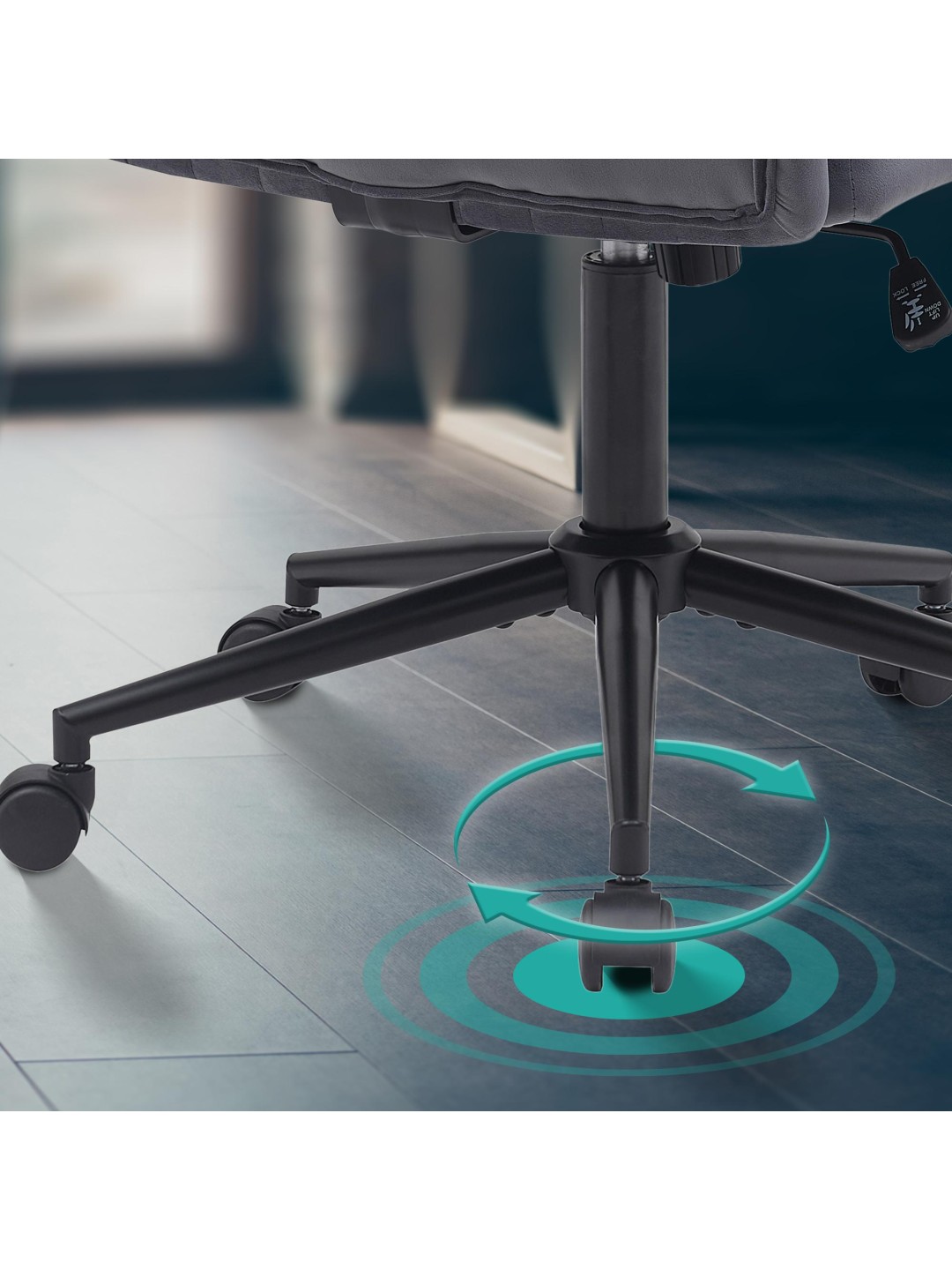La silla de escritorio es ajustable en altura y puede girar 360 grados, por lo que puede adaptarla individualmente a sus necesidades. Gracias a las cinco ruedas de marcha suave, la silla se puede mover sin esfuerzo y sin dañar el suelo. La tensión del mecanismo basculante integrado se puede ajustar.