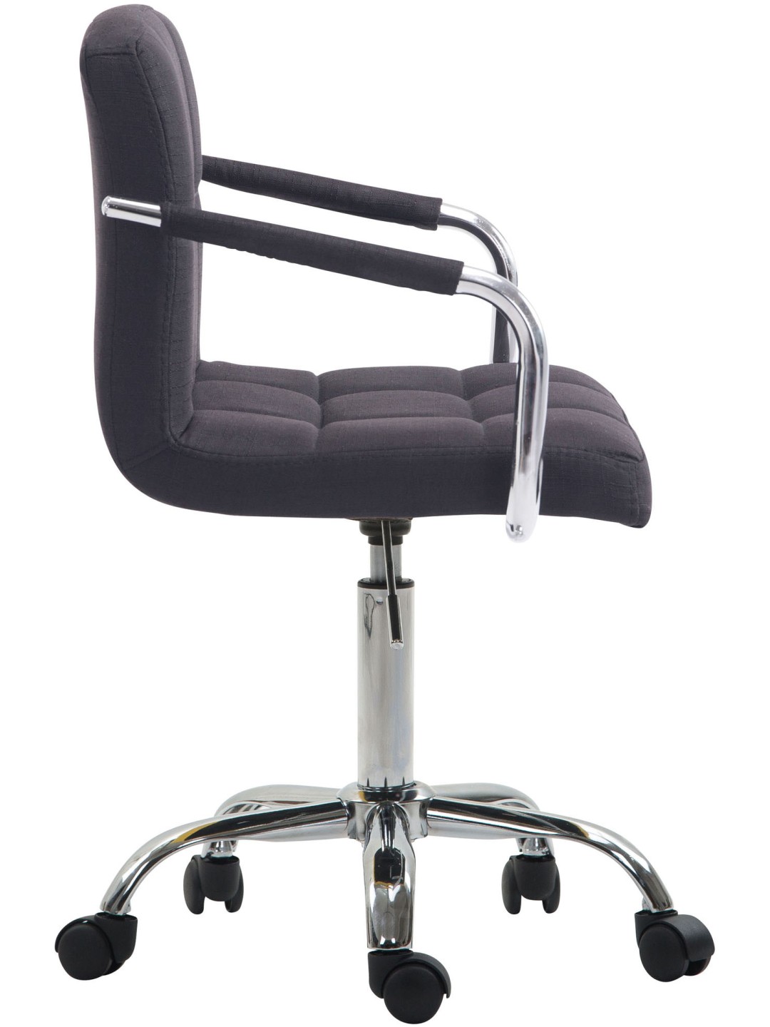 Esta exclusiva silla de oficina Lucy V2 no sólo impresiona por su aspecto moderno, sino que nadie puede superarla en términos de comodidad. Su acolchado de alta calidad y su funda de tela de fácil cuidado garantizan una experiencia cómoda al sentarse. Gracias a su respaldo bajo, el modelo Lucy V2 también es ideal para habitaciones más pequeñas, ¡para que no pierdas la pista! La elegante estructura cromada y los robustos reposabrazos curvos con revestimiento de tela le dan al conjunto un toque extra. Gracias a la altura del asiento regulable de forma continua, esta silla de oficina garantiza además un asiento ergonómico en todo momento. Se sostiene de forma segura sobre cinco ruedas de marcha suave y una estructura de metal con aspecto cromado. No importa si se trata de suelos duros o de moqueta, siempre puedes rodar fácil y libremente por el suelo.