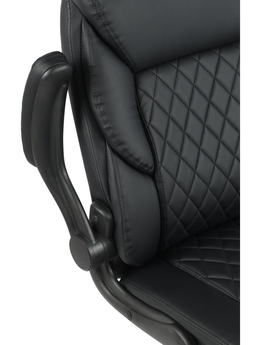 El suave acolchado del asiento, el respaldo y los reposabrazos está recubierto de cuero artificial de alta calidad y fácil de cuidar. El patrón acolchado en forma de rombo contribuye a un aspecto moderno.