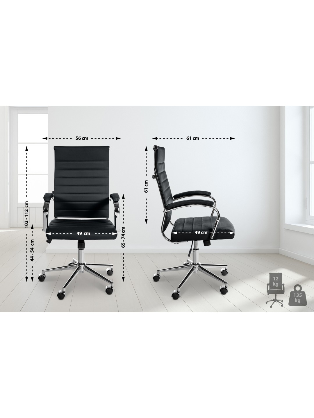 Altura de los reposabrazos: 65 - 74 cm (desde el suelo)