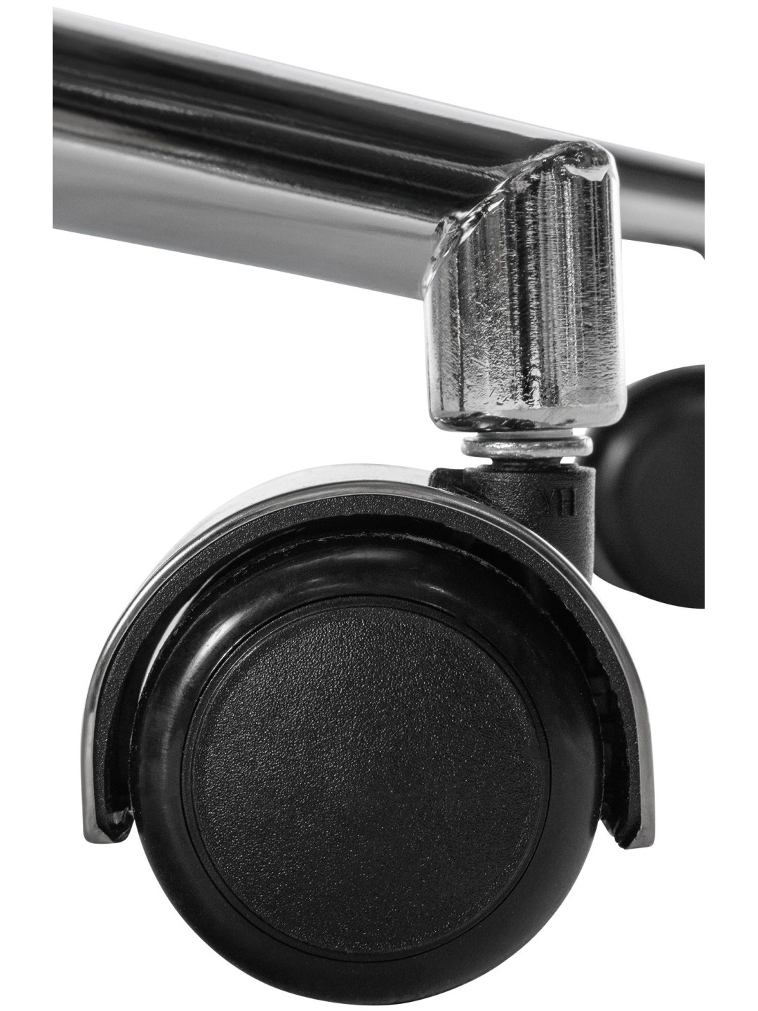 La robusta estructura de metal con aspecto cromado garantiza estabilidad y elegancia. Equipada con ruedas, esta silla giratoria puede soportar hasta 135 kilogramos.