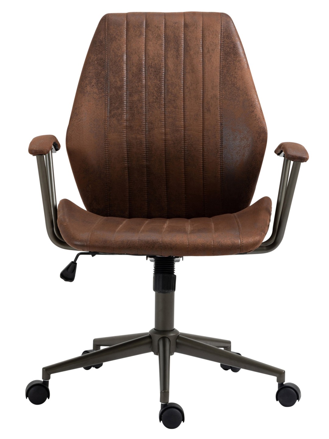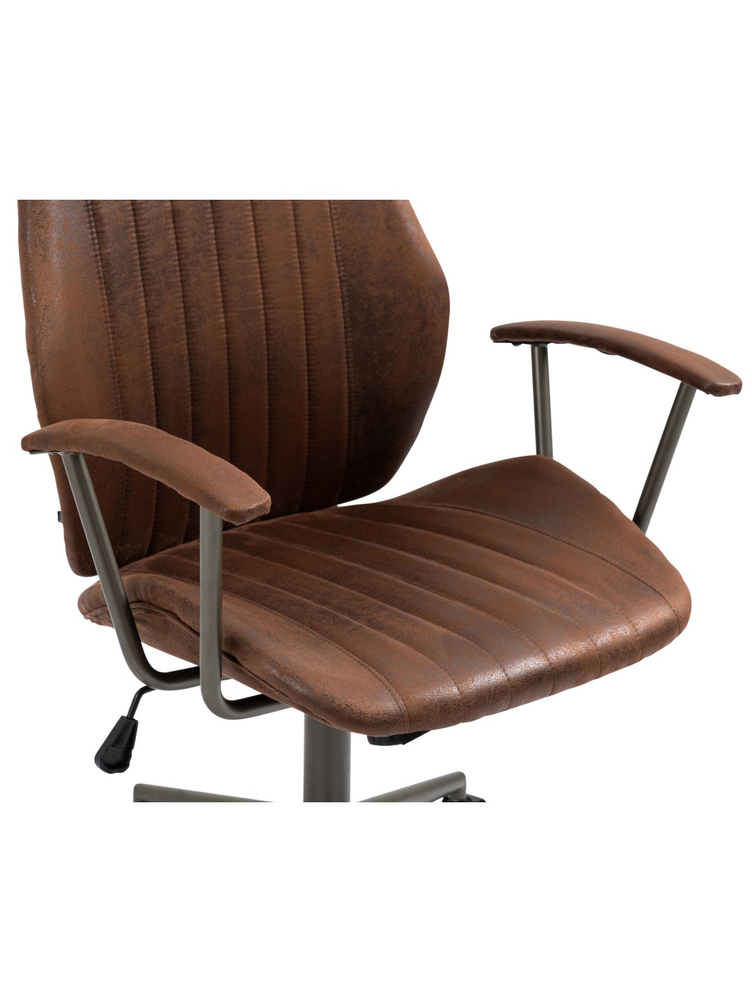 La exclusiva silla de oficina Nampa no sólo impresiona por su inconfundible aspecto industrial, sino que nadie puede superarla en términos de comodidad. La resistente funda de piel sintética y el acolchado de alta calidad garantizan una cómoda sensación de estar sentado durante varias horas. El respaldo tiene una agradable forma de S y la altura del asiento es infinitamente ajustable y garantiza una sentada ergonómica. Además, la silla de escritorio está equipada con un mecanismo basculante que garantiza una mayor libertad de movimiento. La estabilidad está garantizada por la estructura de metal negro. Las cinco ruedas de funcionamiento suave le permiten rodar fácil y cómodamente por el suelo, ya sea sobre suelos duros o alfombrados.