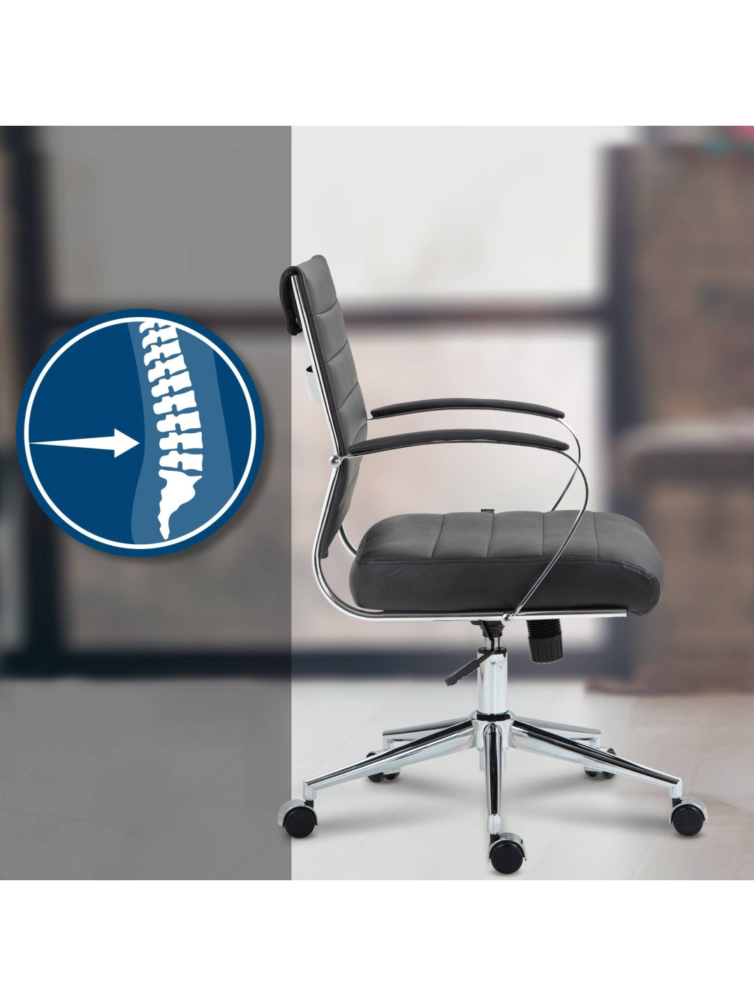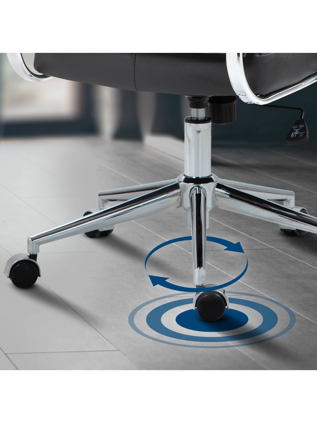 La silla de oficina Oakland combina un diseño ergonómico con comodidad individual y una apariencia elegante. Es el complemento perfecto para cualquier oficina donde la salud y el bienestar en el lugar de trabajo sean importantes. El respaldo acolchado y la forma ergonómica favorecen su posición natural al sentarse. Con el asiento regulable en altura, la función basculante ajustable y las ruedas giratorias de 360°, la silla se adapta de forma flexible a sus necesidades. El marco cromado ofrece estabilidad y una larga vida útil. Con su amplio asiento, Oakland ofrece una comodidad óptima incluso en largos días de trabajo.