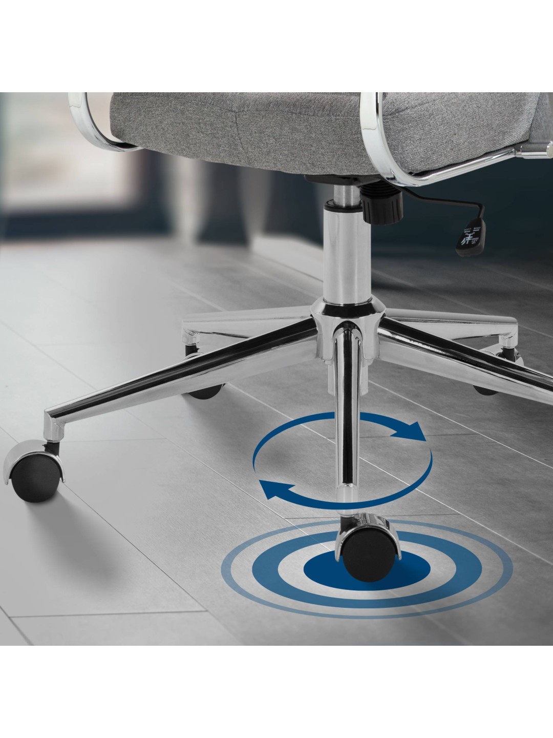 La silla de oficina Oakland combina un diseño ergonómico con comodidad individual y una apariencia elegante. Es el complemento perfecto para cualquier oficina donde la salud y el bienestar en el lugar de trabajo sean importantes. El respaldo acolchado y la forma ergonómica favorecen su posición natural al sentarse. Con el asiento regulable en altura, la función basculante ajustable y las ruedas giratorias de 360°, la silla se adapta de forma flexible a sus necesidades. El marco cromado ofrece estabilidad y una larga vida útil. Con su amplio asiento, Oakland ofrece una comodidad óptima incluso en largos días de trabajo.