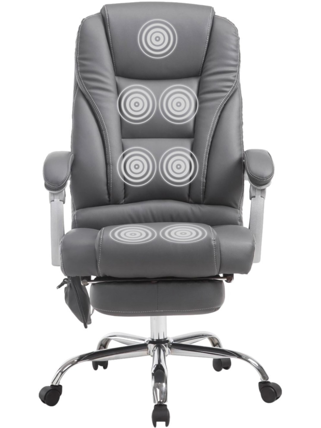 El reposapiés y el respaldo reclinable de la silla ergonómica también garantizan una comodidad excepcional: ¡recuéstese y disfrute! La silla de escritorio es regulable en altura y puede girar 360 grados. Se apoya de forma segura sobre una estructura de metal y cinco ruedas giratorias que mantienen la silla móvil incluso sobre suelos duros y alfombras. El sillón de masaje puede soportar hasta 150 kg.