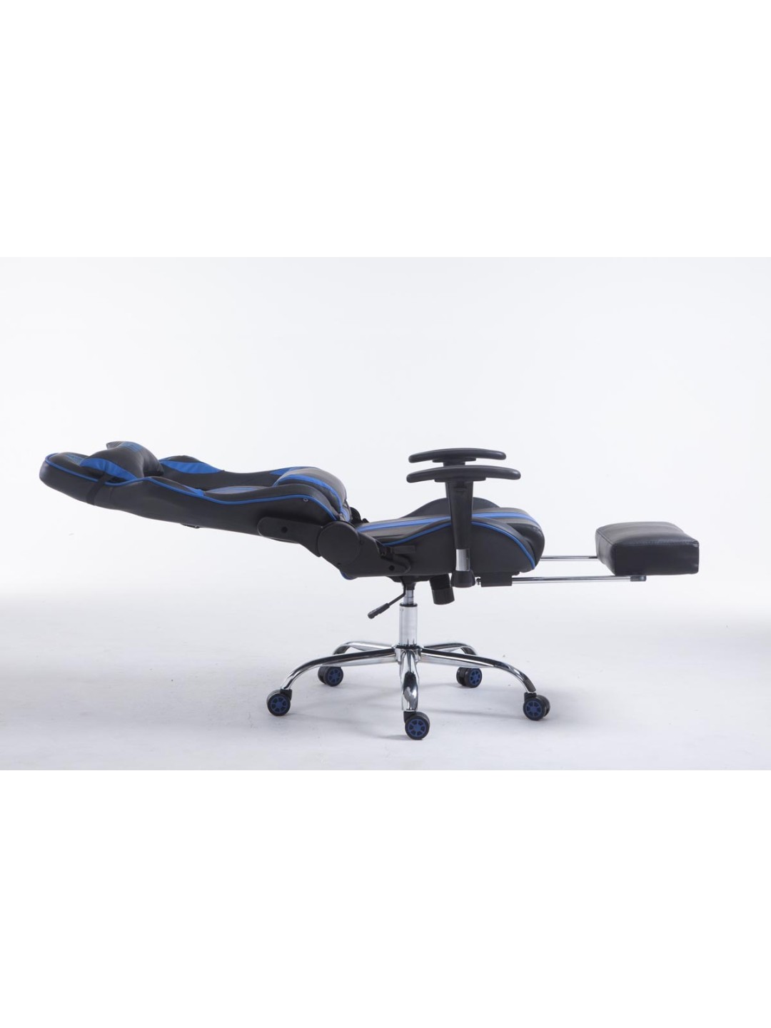 Silla de oficina Racing Limit V2 de cuero artificial con reposapiés, negro/azul