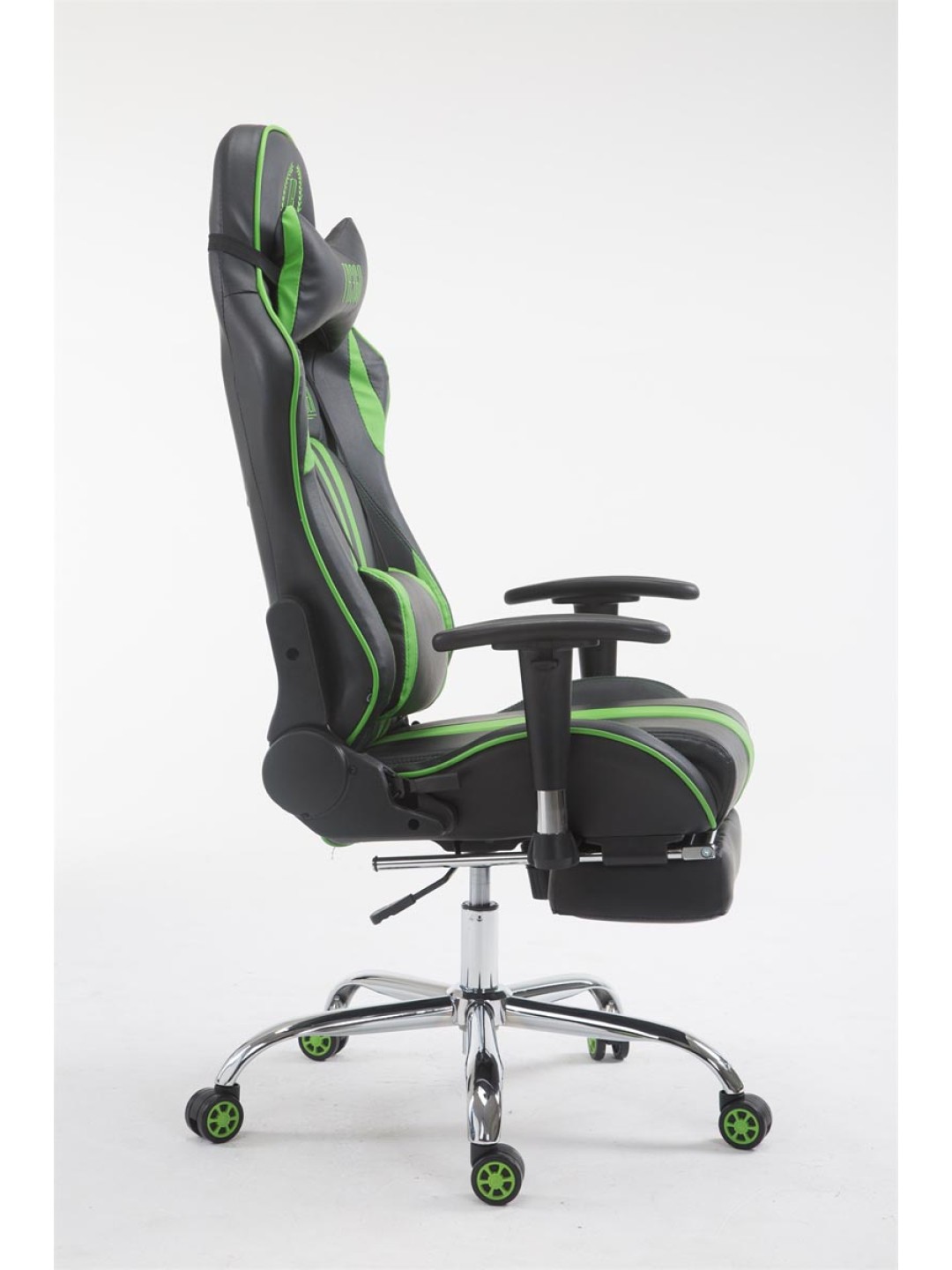 Silla de oficina Racing Limit V2 de cuero artificial con reposapiés, negro/verde