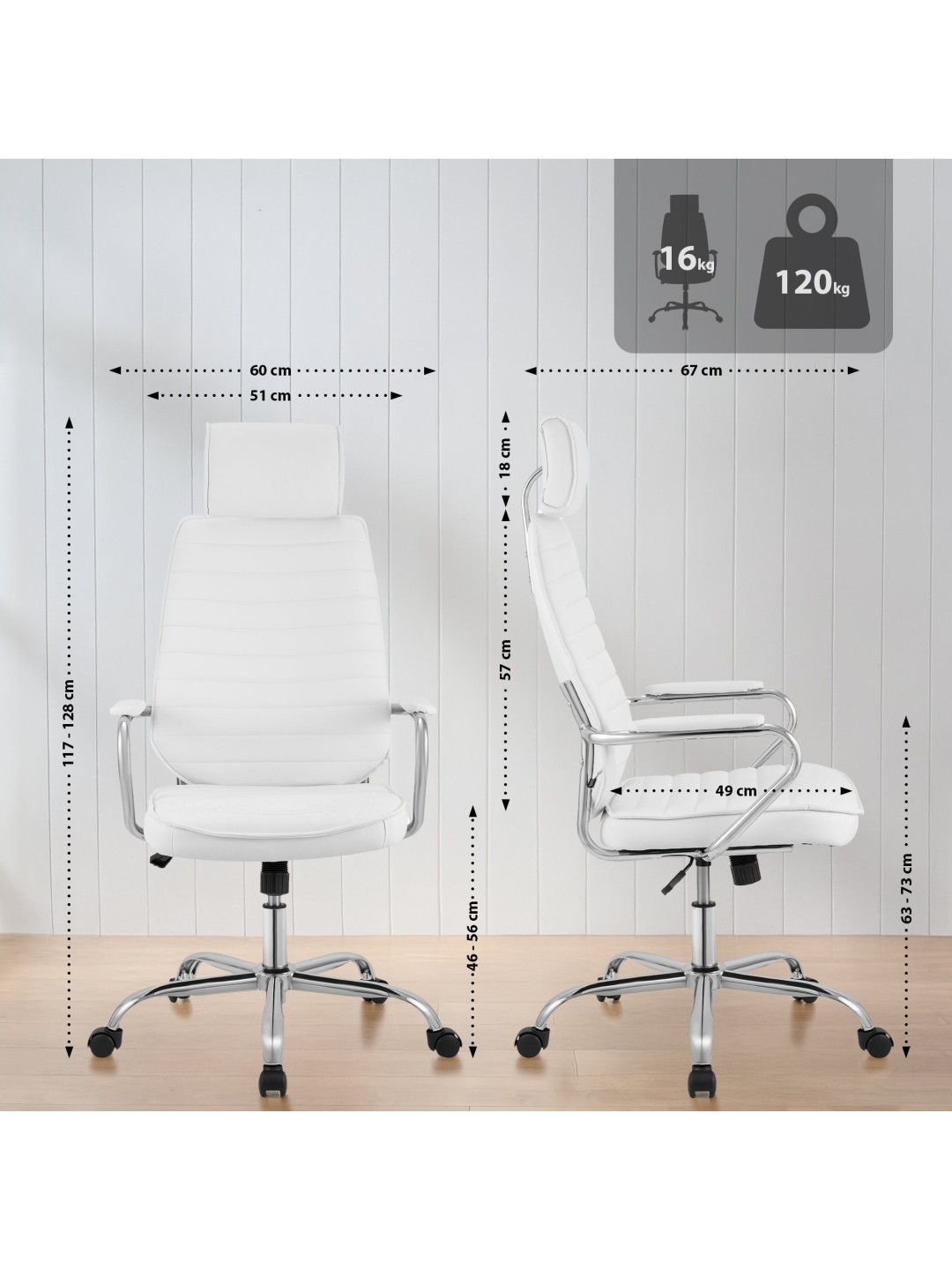 Silla de oficina Rako, blanco