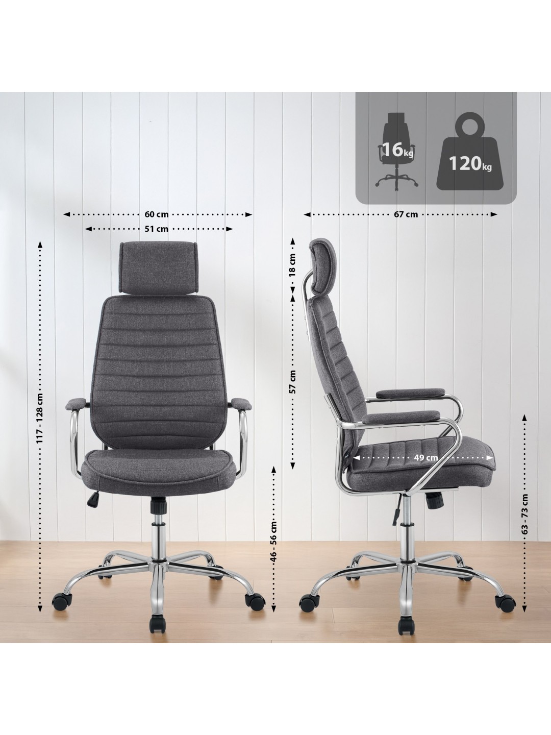 El respaldo tiene una forma ergonómica y dispone de un reposacabezas. La silla de escritorio de altura regulable dispone de un mecanismo basculante en el que se puede ajustar de forma variable la tensión de inclinación. El asiento también se puede bloquear firmemente.