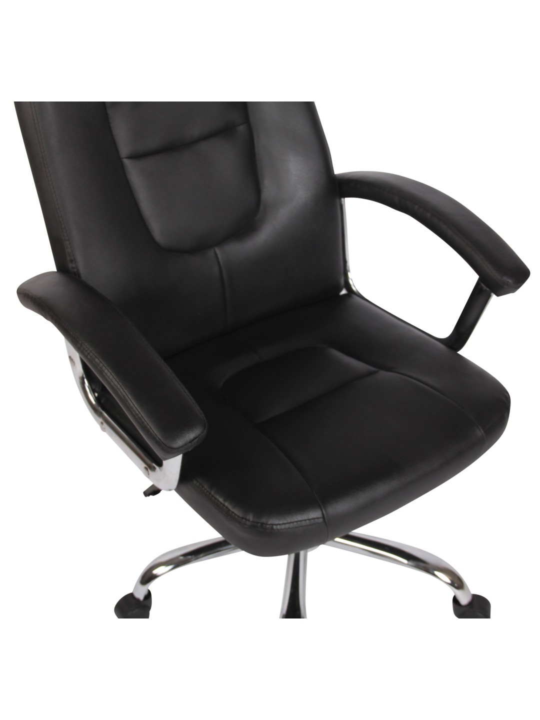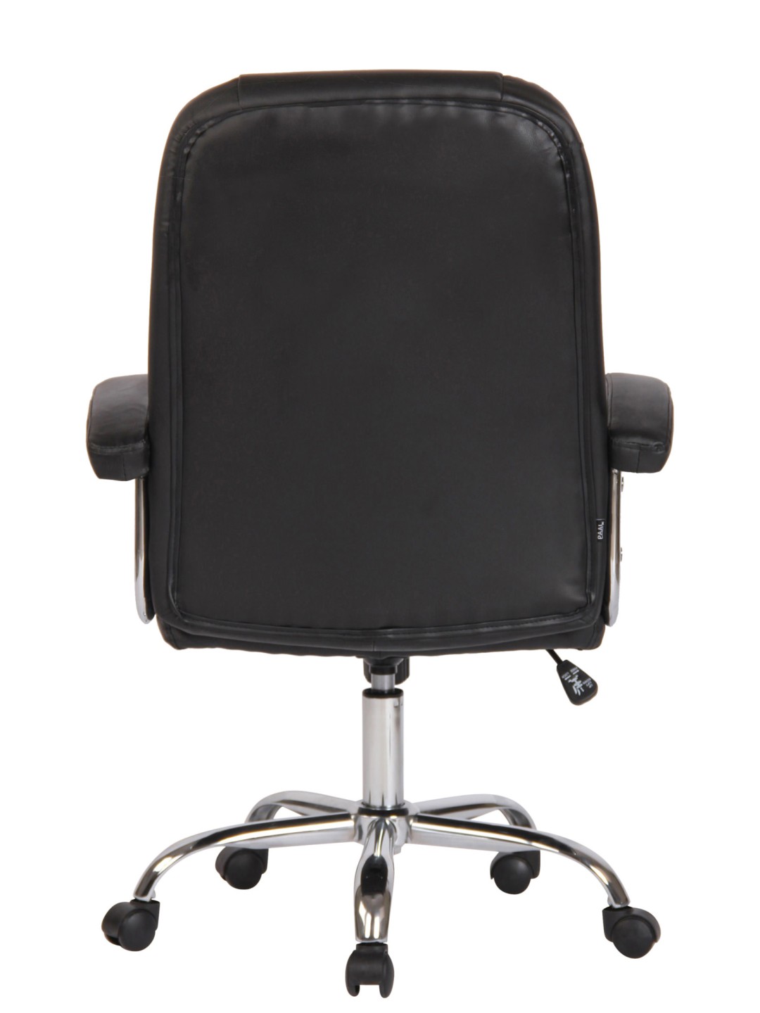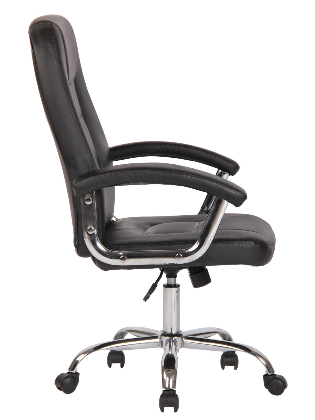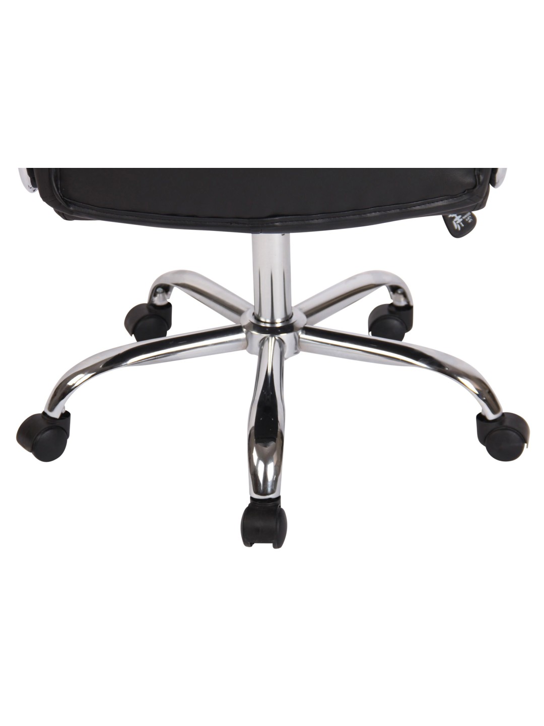 Esta silla no deja nada que desear en cuanto a comodidad se refiere, ya que el respaldo ergonómico y la altura del asiento infinitamente ajustable garantizan una posición cómoda al sentarse. La libertad de movimiento está garantizada por el mecanismo basculante incorporado. El acolchado de alta calidad y la funda de cuero artificial de fácil cuidado convencen además por su larga vida útil. La silla de oficina se apoya de forma segura sobre cinco ruedas suaves y una estructura con aspecto cromado. Independientemente de si se trata de suelos duros o alfombrados, siempre puedes rodar fácilmente y sin apretar por el suelo.