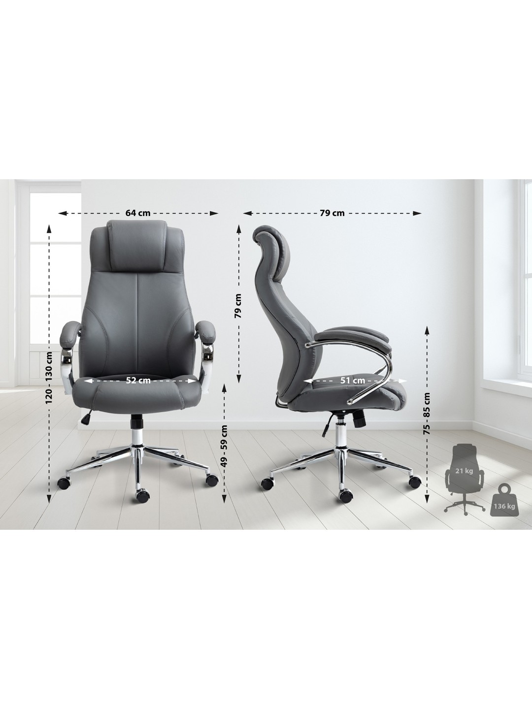Altura de reposabrazos: 75 - 85 cm