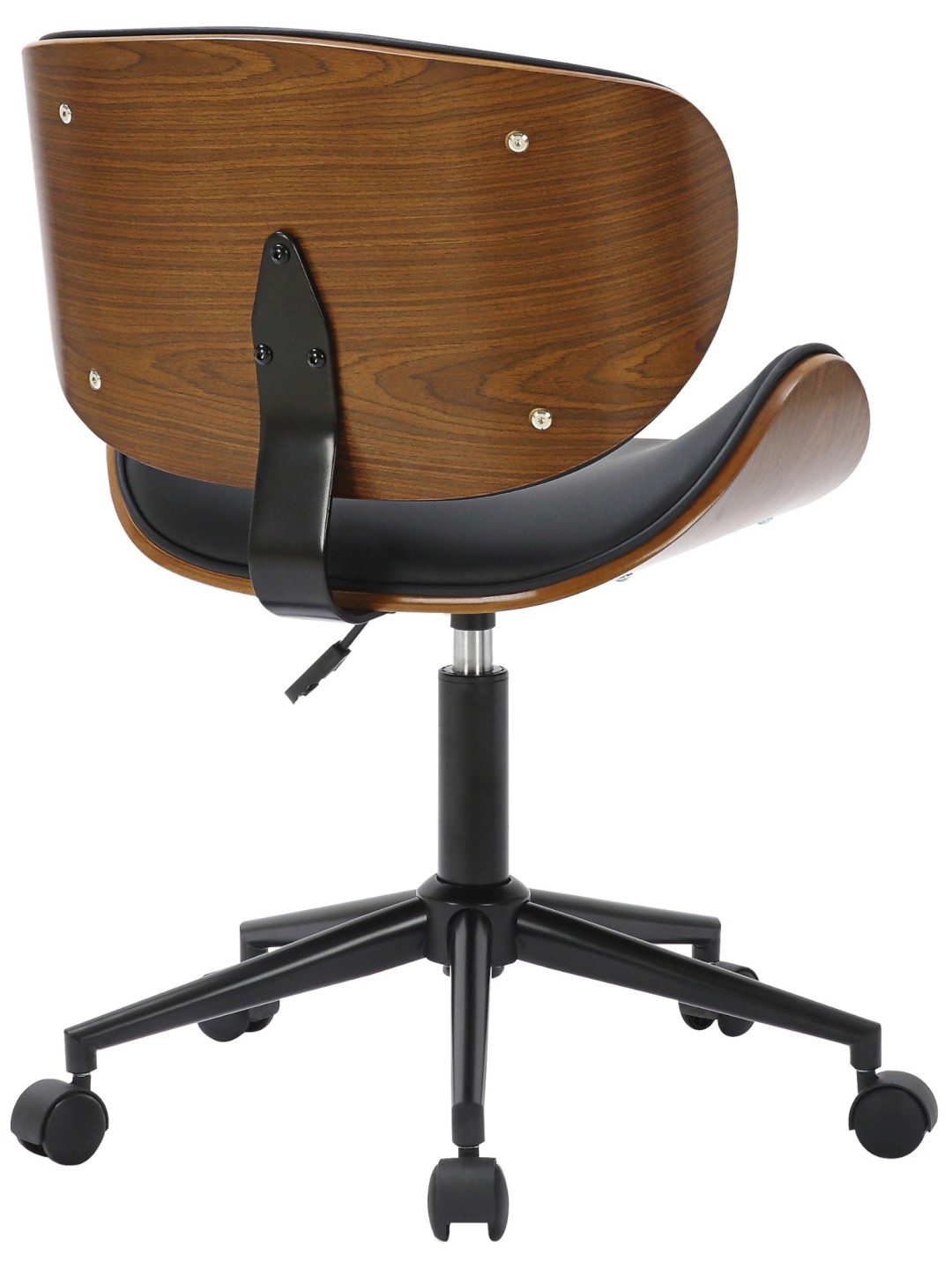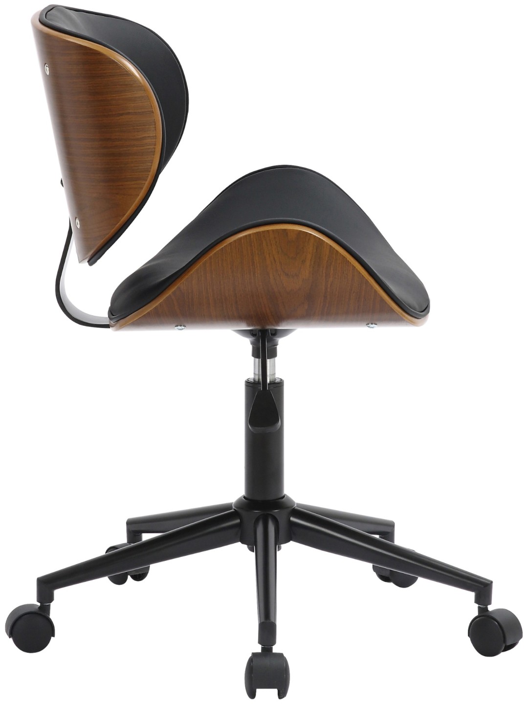 Con una estructura de madera curvada con un elegante aspecto de nogal y un respaldo y asiento acolchados cubiertos de cuero sintético negro duradero, esta silla ofrece estética y durabilidad.