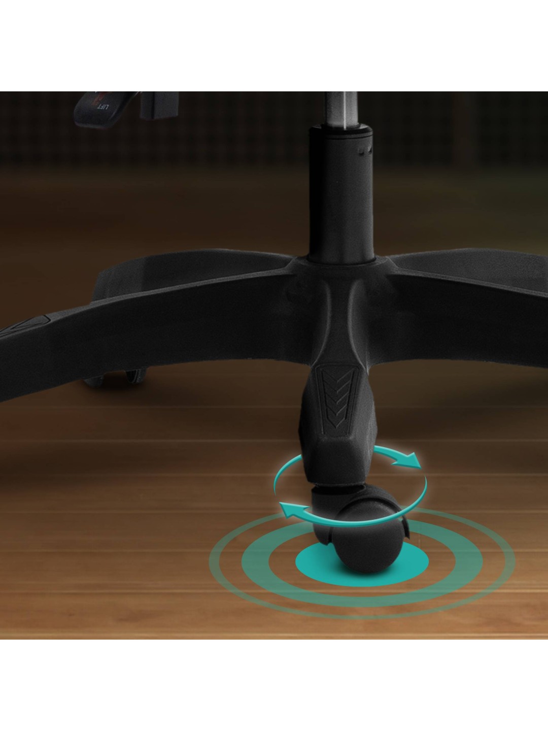 La silla gaming se puede ajustar en altura de forma continua mediante el elevador de gas de alta calidad. Por último, la estructura de plástico extremadamente robusta con sus ruedas de funcionamiento suave confiere a la silla giratoria un soporte estable. La capacidad de carga máxima es de 120 kg.