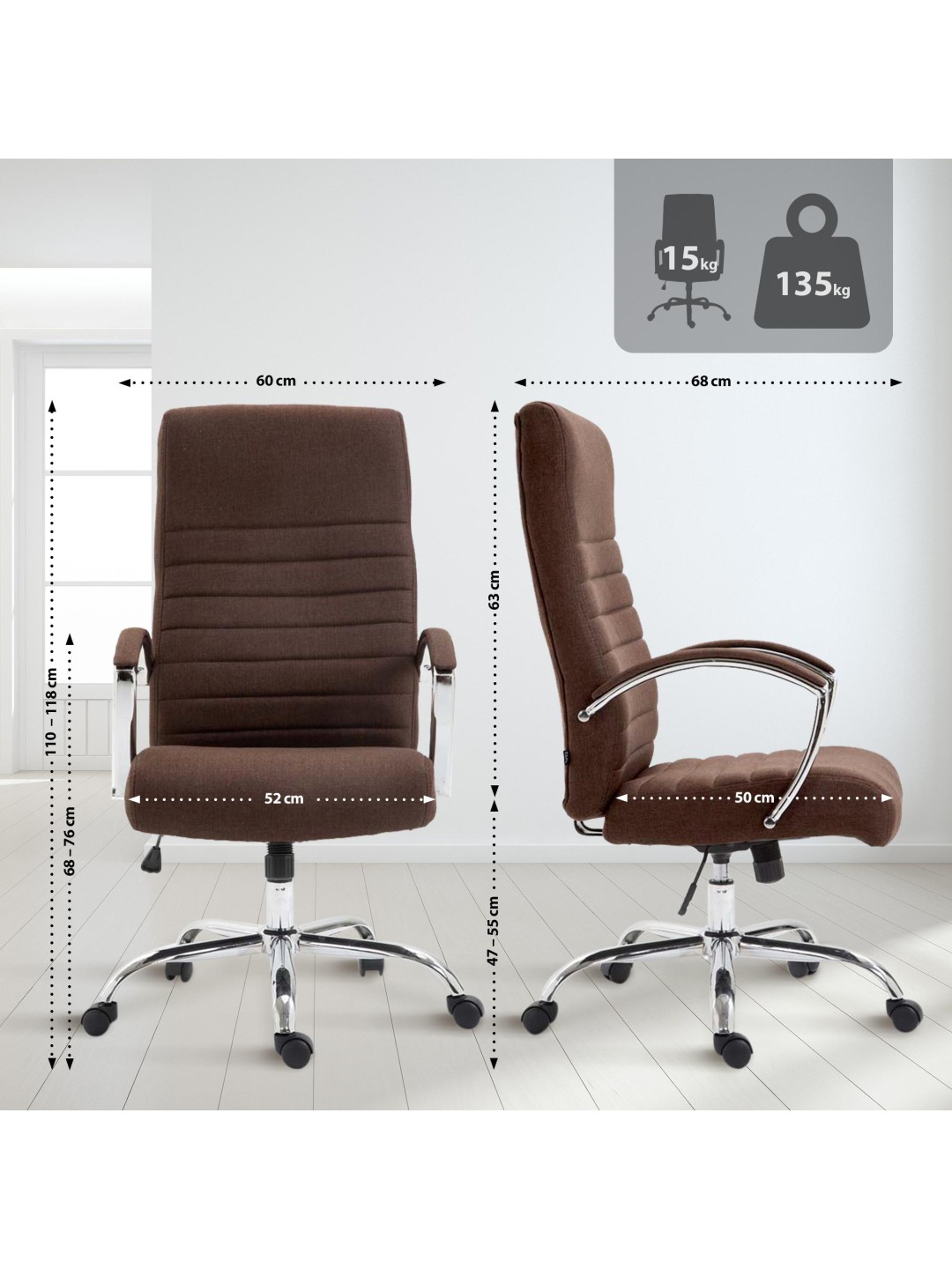 La silla de oficina XL Valais es ideal para personas altas y pesadas, ya que el resorte de presión de gas está diseñado para un uso prolongado de hasta 136 kg. Es una silla de oficina con acolchado de alta calidad y funda de tela. La altura del asiento se puede ajustar de forma continua mediante la palanca situada debajo del asiento, lo que garantiza un asiento ergonómico. El mecanismo basculante incorporado también garantiza una mayor libertad de movimiento. La estructura de la silla de oficina es de metal con aspecto cromado. Se sostiene de forma segura sobre cinco robustas ruedas de plástico. No importa si se trata de suelos duros o alfombrados, siempre podrá rodar con facilidad y soltura por el suelo.